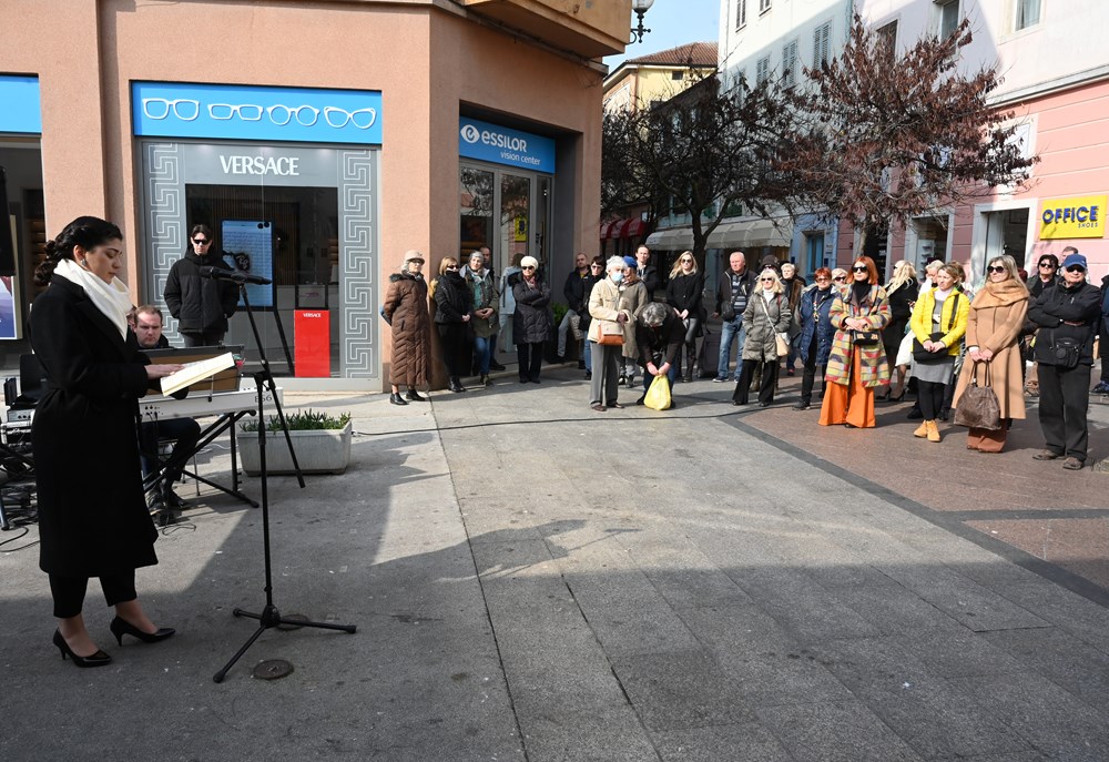 Nazočni su tako mogli saznati da je Ciscutti bio mecena i dobrotvor, sagradio je Portaratu, Danteov trg, pa Kandlerovu ulicu kao i mnoga druga nezapisana zdanja, te dva kazališta. Teatro Nuovo, sagrađeno 1854. na Danteovom trgu koje je nekoliko godina kasnije postalo premalo za grad koji je sve više rastao, a građani imali sve veću potrebu za kulturnim uzdizanjem. Zbog toga, 1879. postavlja se kamen temeljac Politeami Ciscutti, velikom kazališnom zdanju kojeg danas zovemo Istarsko narodno kazalište.