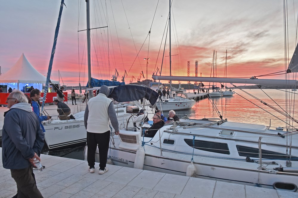 Nakon što je večeras na Carinskom gatu pulski dogradonačelnik Bruno Chergnul u ime grada otvorio manifestaciju, druženje se nastavilo uz Čarobnu frulu i "Ćakule pod jedrima" koje je vodila novinarka Radio Pule Dorina Tikvicki, a sudjelovali su Livio Jeličić, osnivač Udruge "Molaj cimu" koji će sa isploviti sa starim brodom taratanom1927. koji će biti i regatni brod, i Maks Vrečko, sudionik Rolex Middle Sea Race regate.