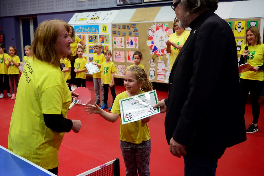 Stoga su najmlađi stolnotenisači, poznatiji kao Pandići, povodom uspješnog završetka projekta danas u Domu sportova Mate Parlov prezentirali naučene vještine, nakon čega su im dodijeljene i diplome kao nagrada za uloženi trud.
