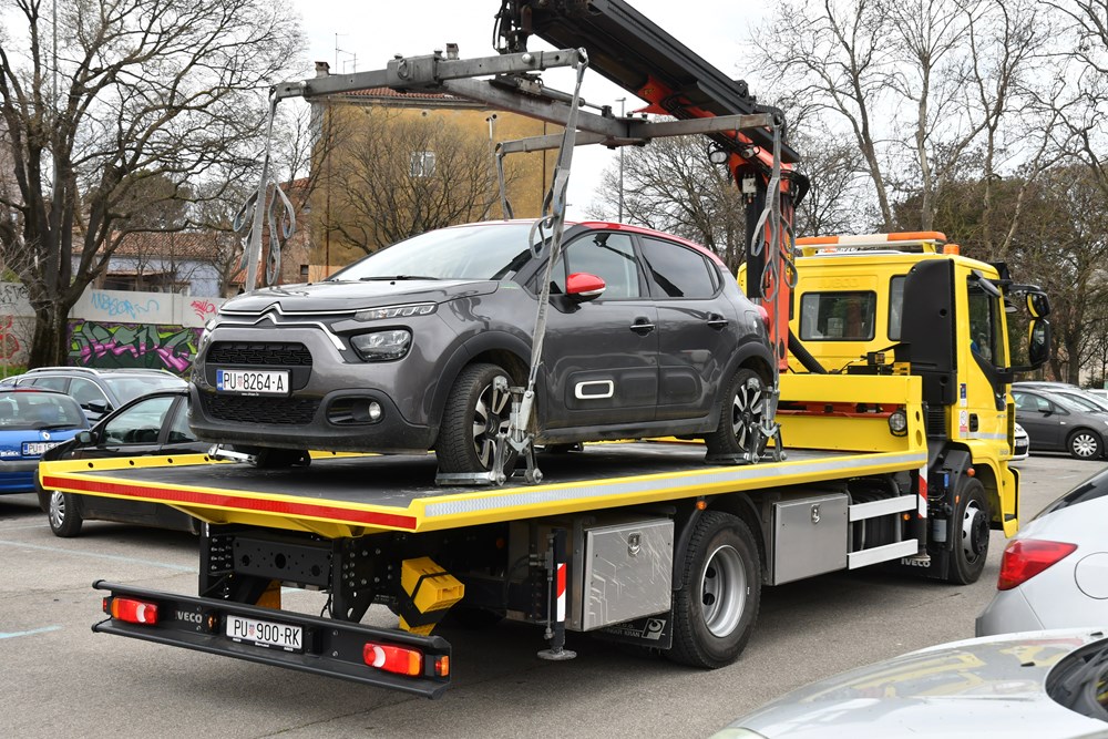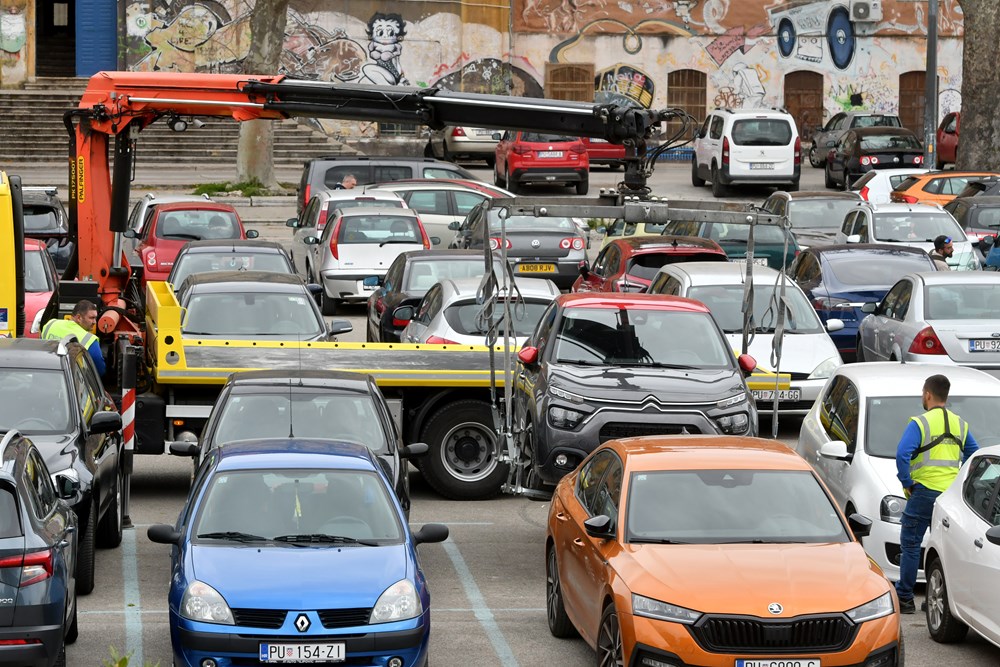 Počela je naplata parkinga na velikom parkirališu u Puli kod Rojca. Pauk Pula Parkinga od jutra diže vozila koja su se tamo zatekla.