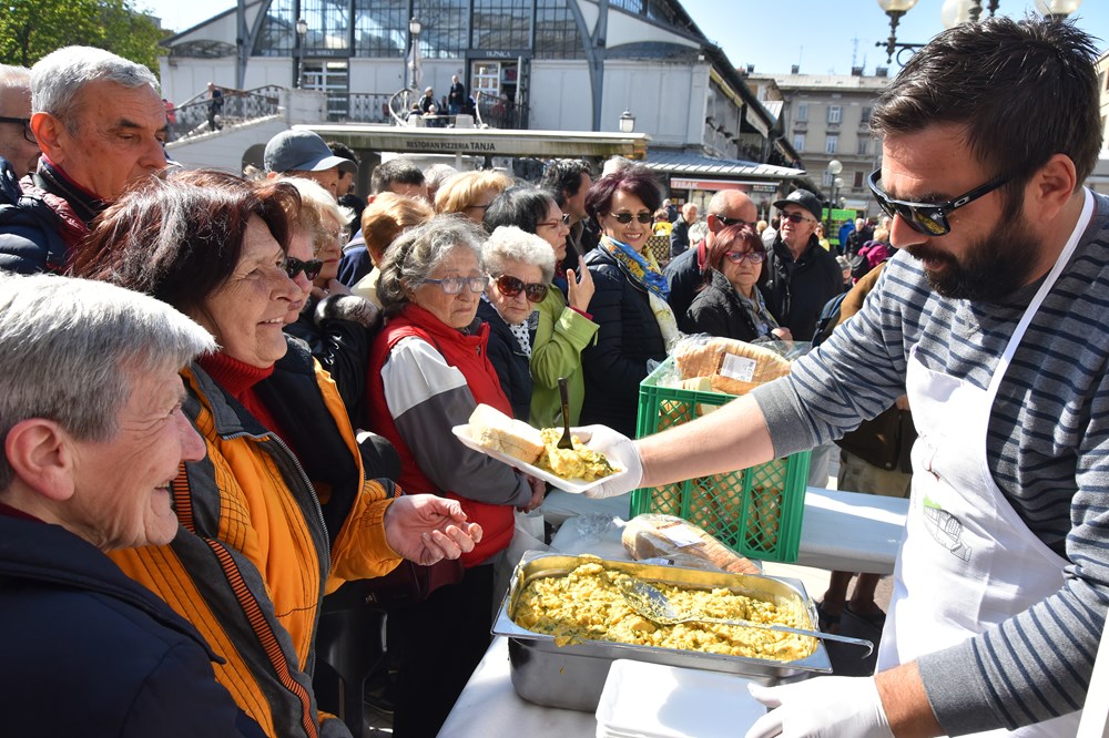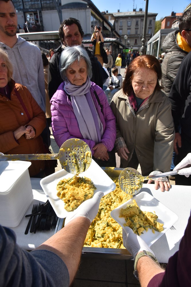 Budimir Žižović – Žižo i ekipa pripremili su danas fritaju od 1.500 jaja i 10 kilograma šparuga, na tradicionalnoj Uskrsnoj padeli. Prekrasno, sunčano subotnje jutro bilo je i više nego dobra kulisa za druženje na tržnici, a revni kuhari s pripremom su krenuli nešto iza 10 sati.