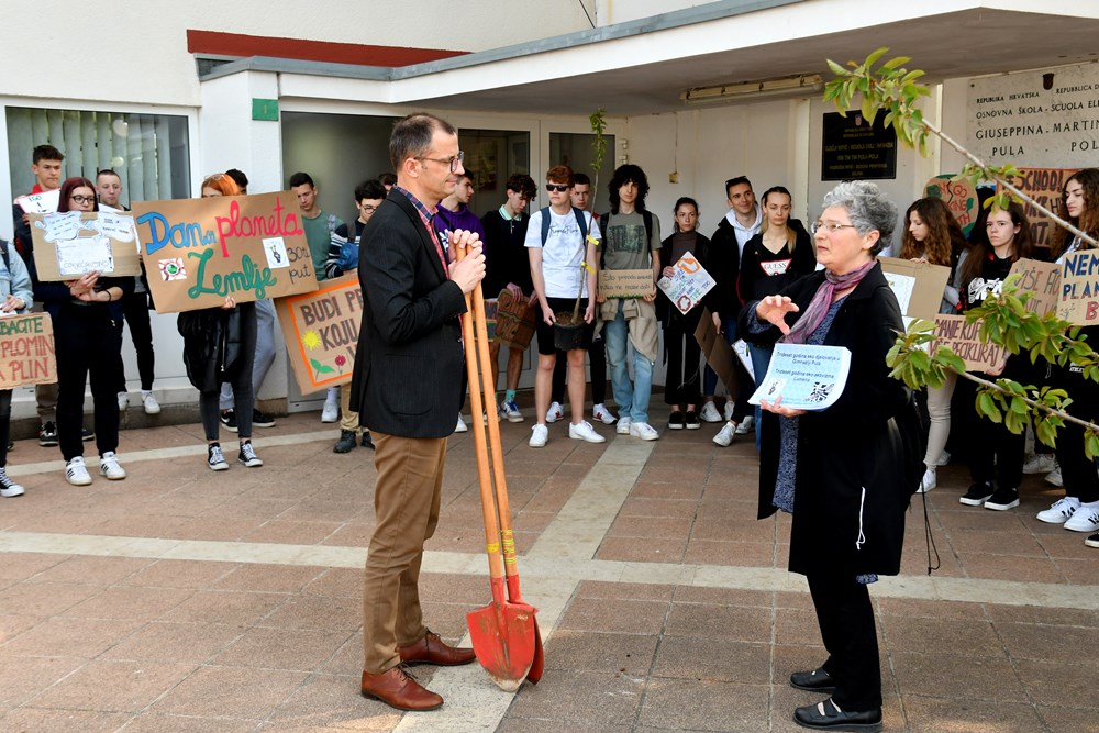 Nakon već tradicionalnog Mimohoda upozorenja, koji se održao jutros, s početkom u 9 sati, a krenuo je s igrališta Gimnazije preko tržnice, Portarate, Giardina, do OŠ. G. Martinuzzi, u suradnji s Gradom - Upravnim odjelom za prostorno planiranje i zaštitu okoliša te Herculaneom, kumom Ekoškole, posadit će voćke u sklopu osnovnih škola grada s ciljem prenošenja iskustva i znanja na mlađe generacije o ekološkoj krizi, njenim posljedicama i mogućnostima rješenja.