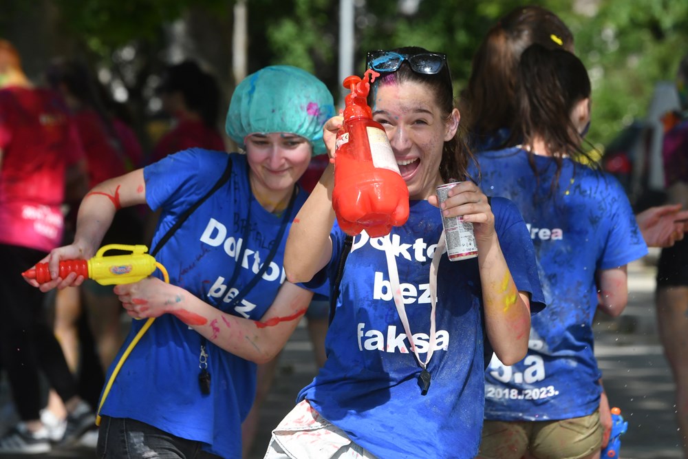 Anja, Deni, Karla, Maura i Laura iz Medicinske škole (fizioterapeuti) vele nam kroz smijeh kako im je danas važno stvoriti uspomene, zabaviti se, ali i dobro se zaprljati, što nam već viđenim dokazuju da su već dobrano uspjele. "Idemo nakon 13 sati malo spavati, onda na more i opet navečer vani", opisuju nam planove. Danas očekuju ludilo, ali budući da su ove djevojke medicinarke, obećaju da će pružiti pomoć, ukoliko to bude potrebno. A kakvi su im planovi nakon ovih ludih dana, zanima nas, na što nam uglas govore da je to svakako "proći maturu".