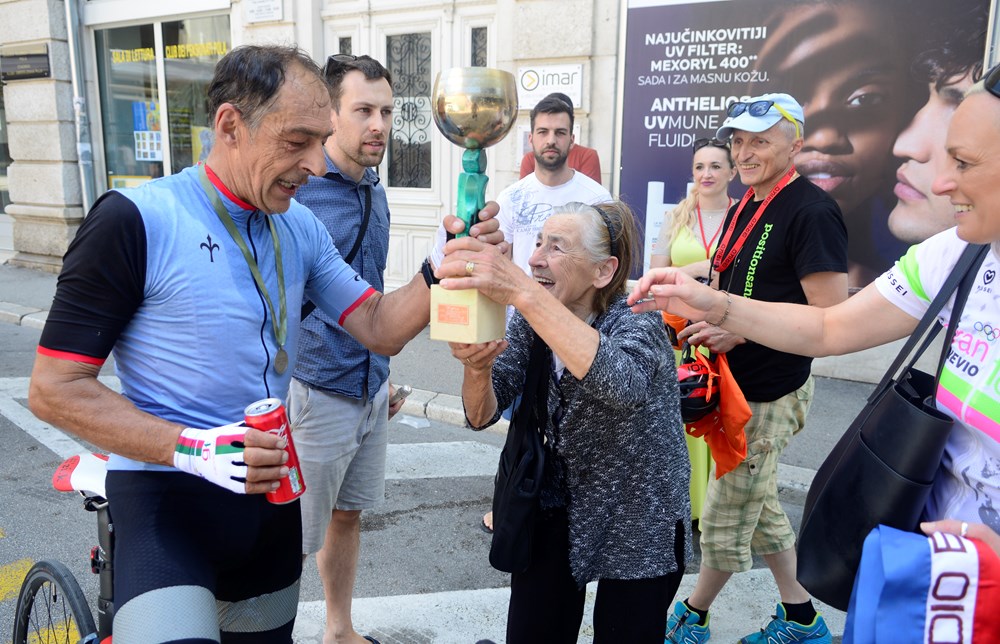 Cilj je bio na istom mjestu, na pulskim Giardinima, ispred Caffe bara Mate legendarnog boksača Mate Parlova koji danas vodi njegov sin, gdje su ga oko 14 sati dočekali obitelj i prijatelji. Ovog mu je puta pehar predala mama Eleonora, a tu je bila i sestra Helena. Trasu je prešao za tri sata, 21 minutu i 26 sekundi.