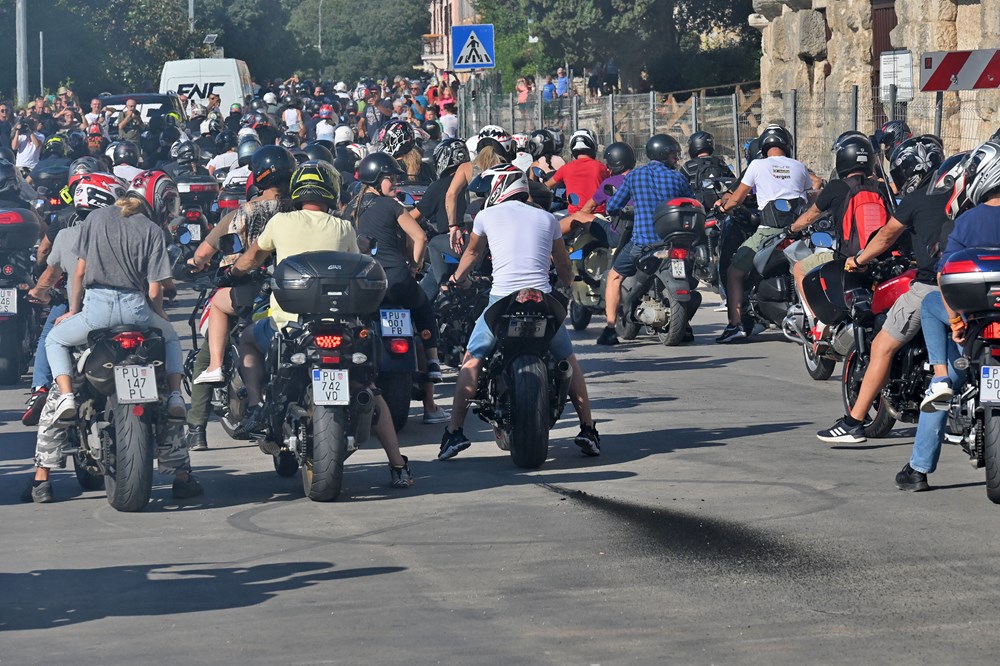Pulske ulice danas je osvojilo nekoliko tisuća bajkera koji su sa svojim glasnim motorima prodefilirali gradom. Spektakularni defile je krenuo s Valelunge odakle se spustio na rivu, a zatim je prošao preko Bulevara, Verude, Radićeve ulice do centra grada, Giardina i na kraju zaustavljanja kod Arene gdje su se bajkeri okupili za tradicionalnu "milenijsku" fotografiju.