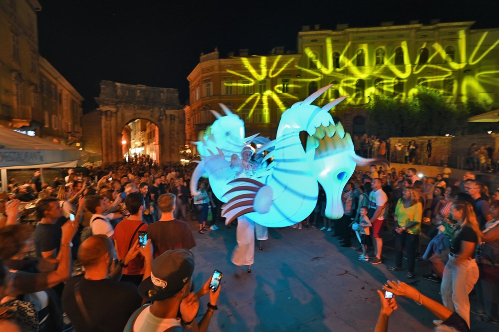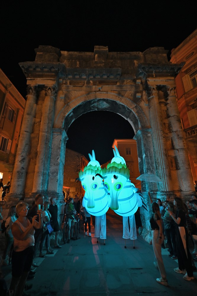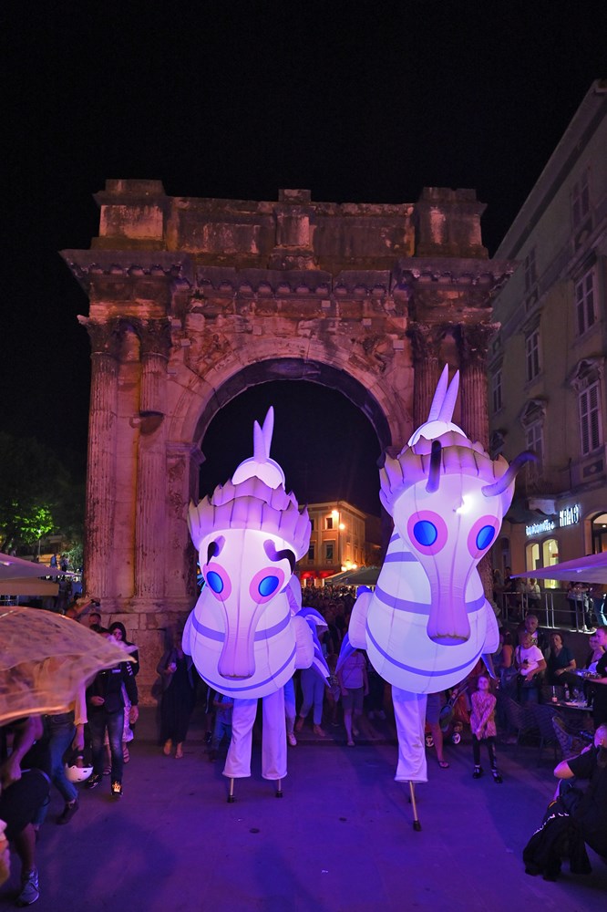 Uz gigantske svjetleće morske konjice koji su prošli kroz antičku Portaratu u izvedbi španjolskog umjetničkog kolektiva Cia Majareta pod nazivom "Guardian of the Abyss", otvoren je u Puli ovogodišnji, deveti po redu festival svjetla - Visualia.