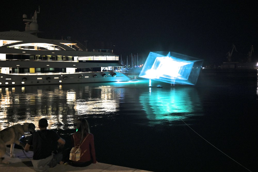 Tako se na Rivi može vidjeti jedna od inovativnijih instalacija - Translucens finskog umjetnika Nika Tiainena, koja je zapravo vodena zavjesa čije su mjere 10x8metara, na kojoj se prikazuje hologramska projekcija.