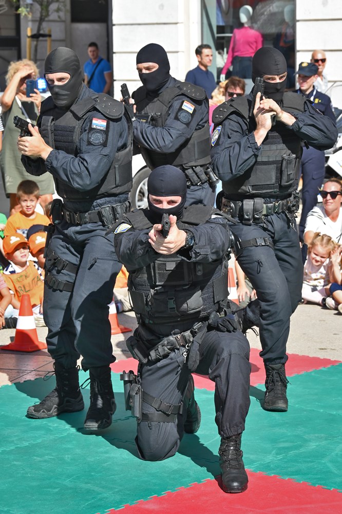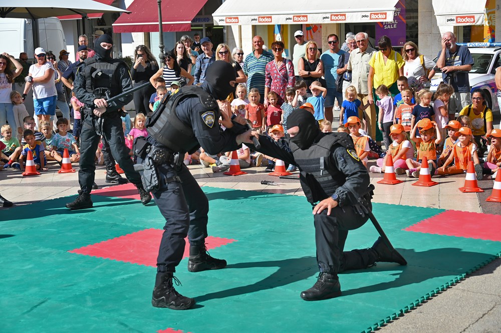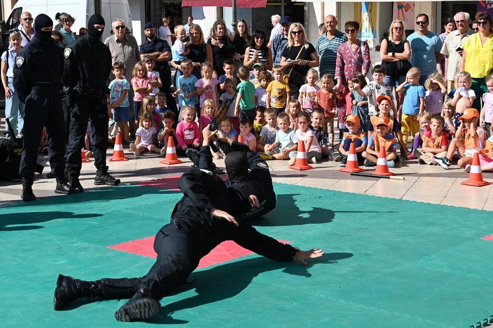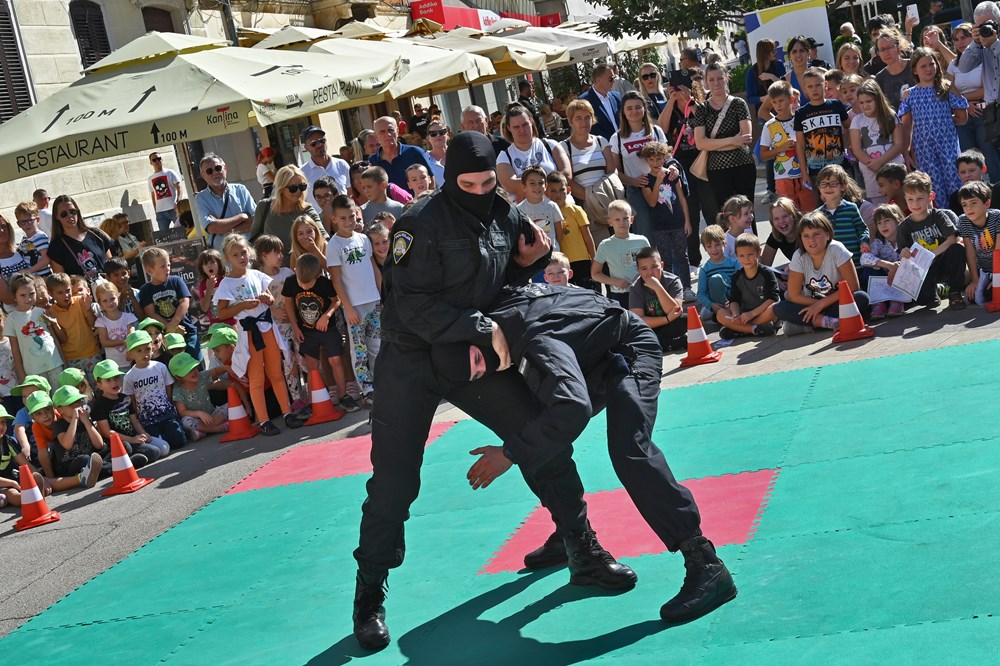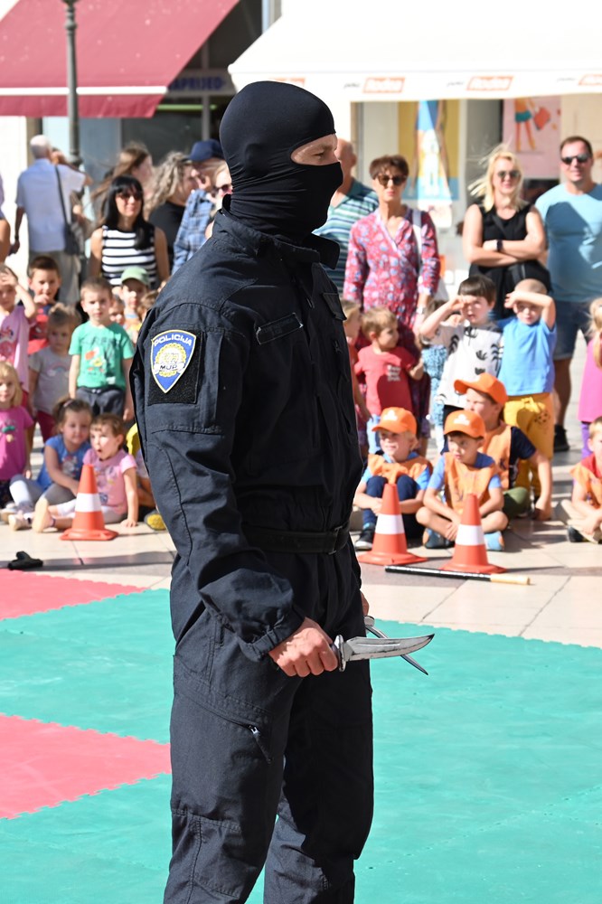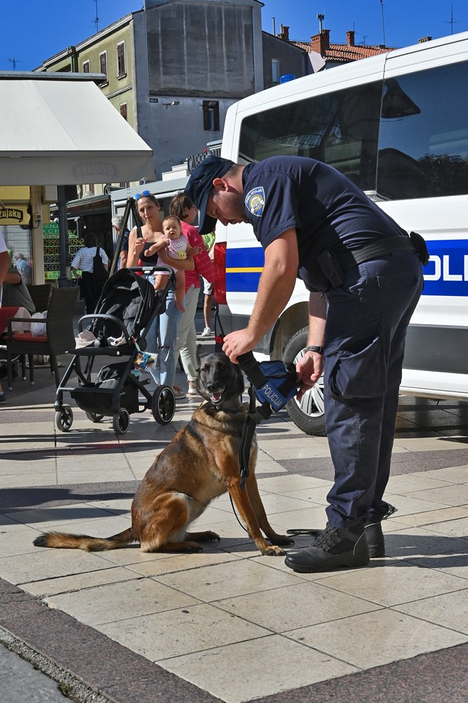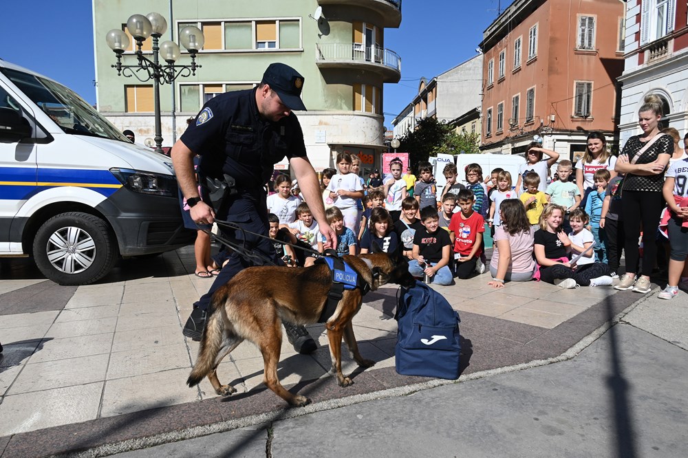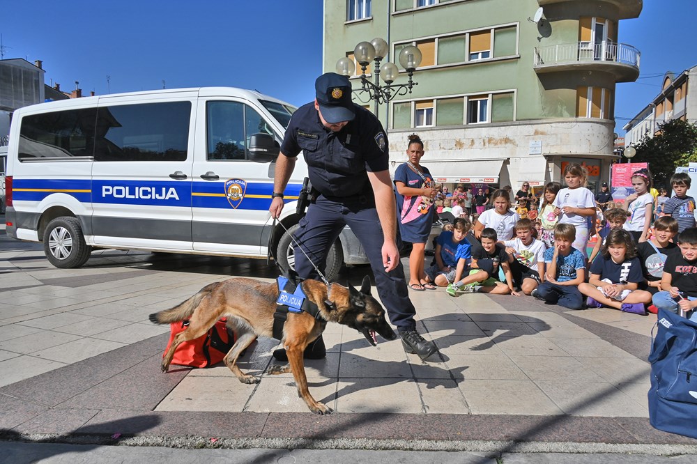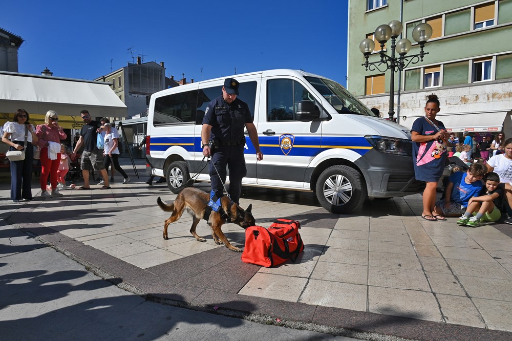 Djeca su za zanimanjem razgledala info punkt kriminalističke tehnike, na kojem su im policijski službenici pokazali kako se uzimaju otisci prstiju te su im za uspomenu poklonili njihov prvi otisak prsta. Ipak, najveće zanimanje okupljenih građana izazvale su pokazne vježbe interventne policije i službenog psa Bele koja je uspješno pronašla drogu sakrivenu u torbama.