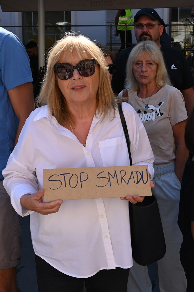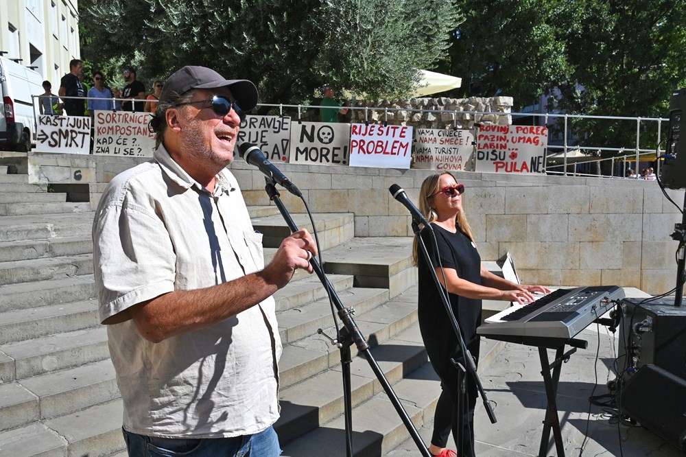 Jedan od glavnih povoda skupu, koji je na trgu Portarata danas okupio nekoliko stotina prosvjednika s područja Pule i općine Medulin, je smrad koji se i ovog ljeta zbog ogromnih količina dopremljenog smeća iz svih krajeva Istre širio s područja Županijskog centra za gospodarenje otpadom, te pritom do očaja dovodio mještane Valbonaša, Cota, Pomera, Vinkurana, Banjola, Medulina, Premanture i Pješčane Uvale.