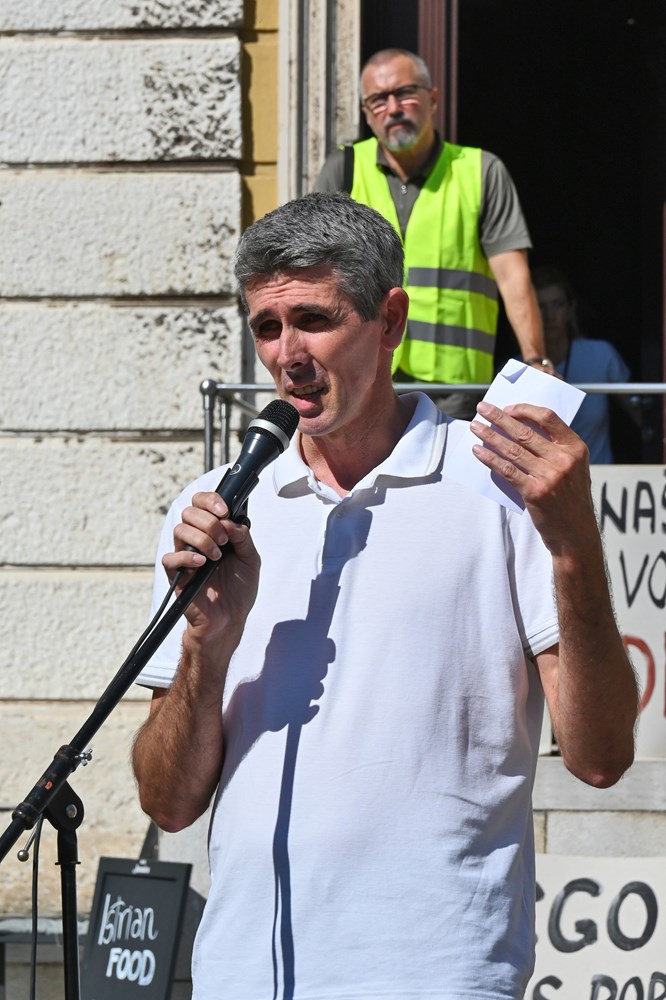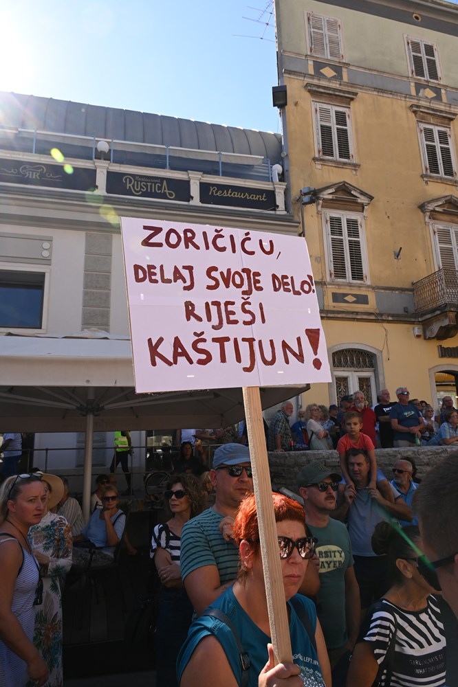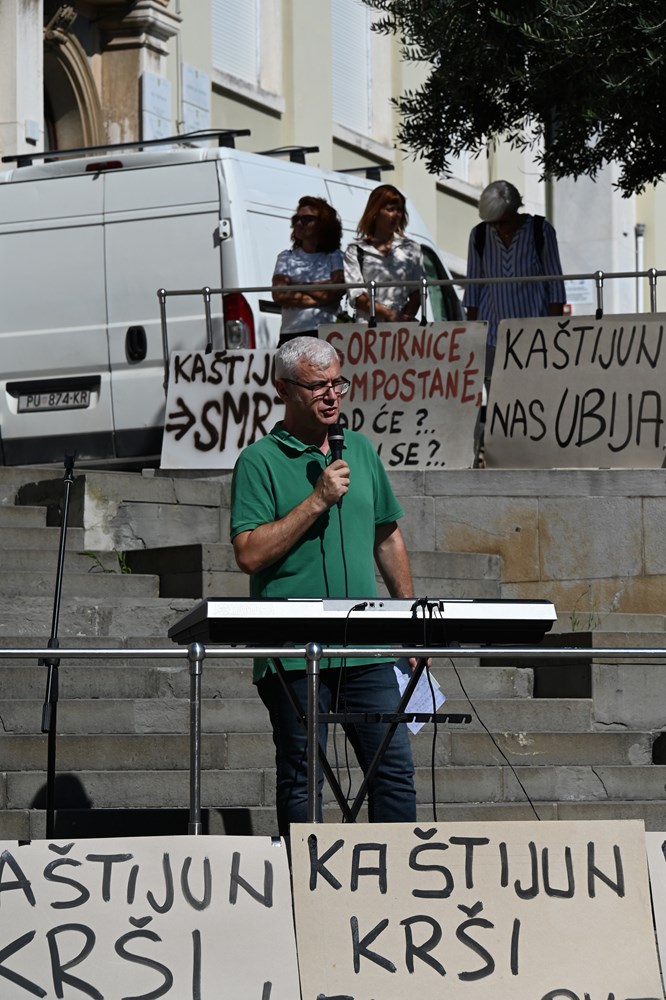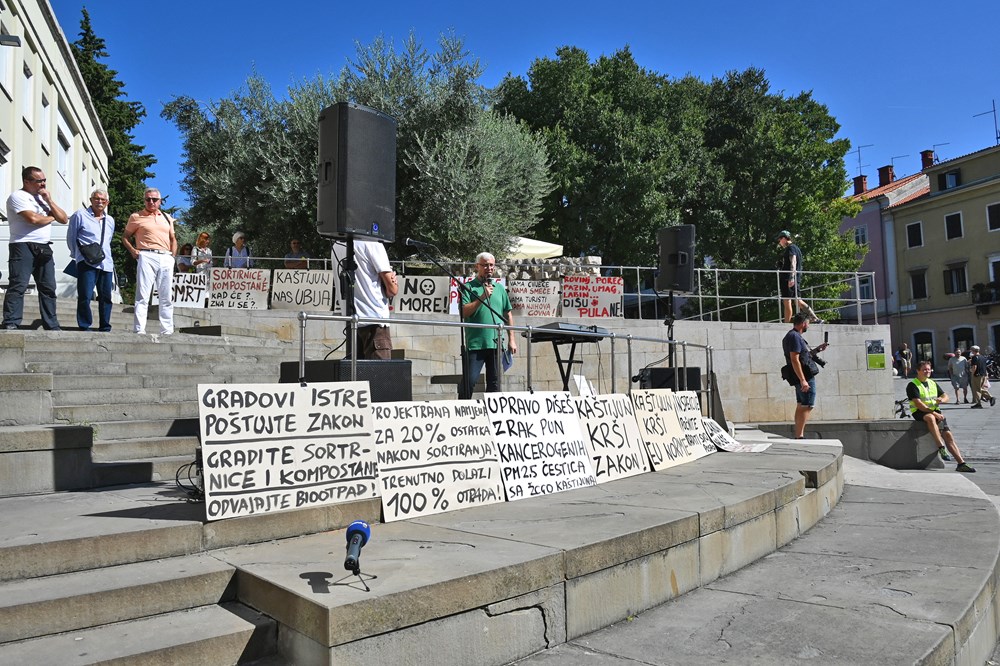 "Svaki grad neka se brine za svoje smeće, ovako više ne može", "Mijenjajte pravilnike, aktivirajte lokalna odlagališta", "Neću vaše smeće!", "Gradovi Istre poštujte zakon, gradite sortirnice i kompostane - odvajajte biootpad!", "Kaštijun krši zakon i EU norme, inspekcije počnite raditi svoj posao", samo su neke od poruka organizatora još jednog prosvjeda u centru kojeg se našao rad Županijskog centra za gospodarenjem otpadom Kaštijun.