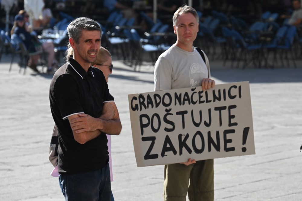 Uoči današnjeg sastanka kojem su prisustvovali pulski gradonačelnik Zoričić, istarski župan Miletić, direktor Kaštijuna Stilinović, predstavnici komunalnih društava gradova i općina u Istarskoj županiji te predstavnici radne skupine za civilni nadzor, ispred Komunalne palače na Forumu okupili su se prosvjednici koji su iskoristili priliku kako bi izrazili svoje nezadovoljstvo zbog već dugo nerješenog problema povezanog s Kaštijunom.