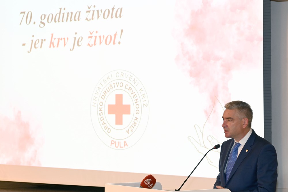 - Čovjek može biti human i plemenit, a to ga takvim čini i kad daje svoju krv. Postoji i druga strana medalje kojoj danas svjedočimo, a to su ratovi u svijet, gdje ljudi - civili bez potrebe ginu. S jedne strane krvlju se spašavaju životi, a s druge strane vidimo što se može dogoditi. Mogu samo zahvaliti darivateljima, brojnim volonterima Crvenog križa i djelatnicima, jer znamo koliko sebe daju kako bi ovo čovječanstvo i ovaj svijet bio bolji, rekao je pritom župan Boris Miletić. Činjenicu anonimnosti primatelja naglasio je gradonačelnik Pule Filip Zoričić.