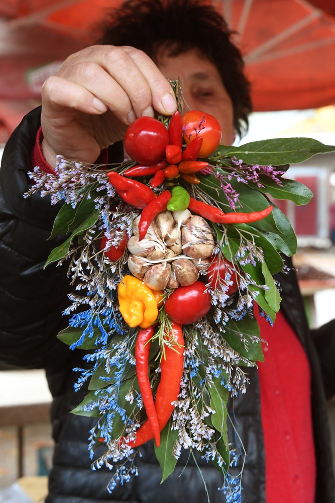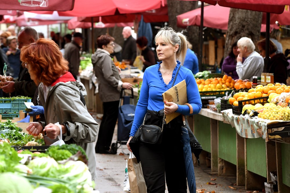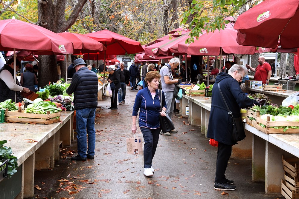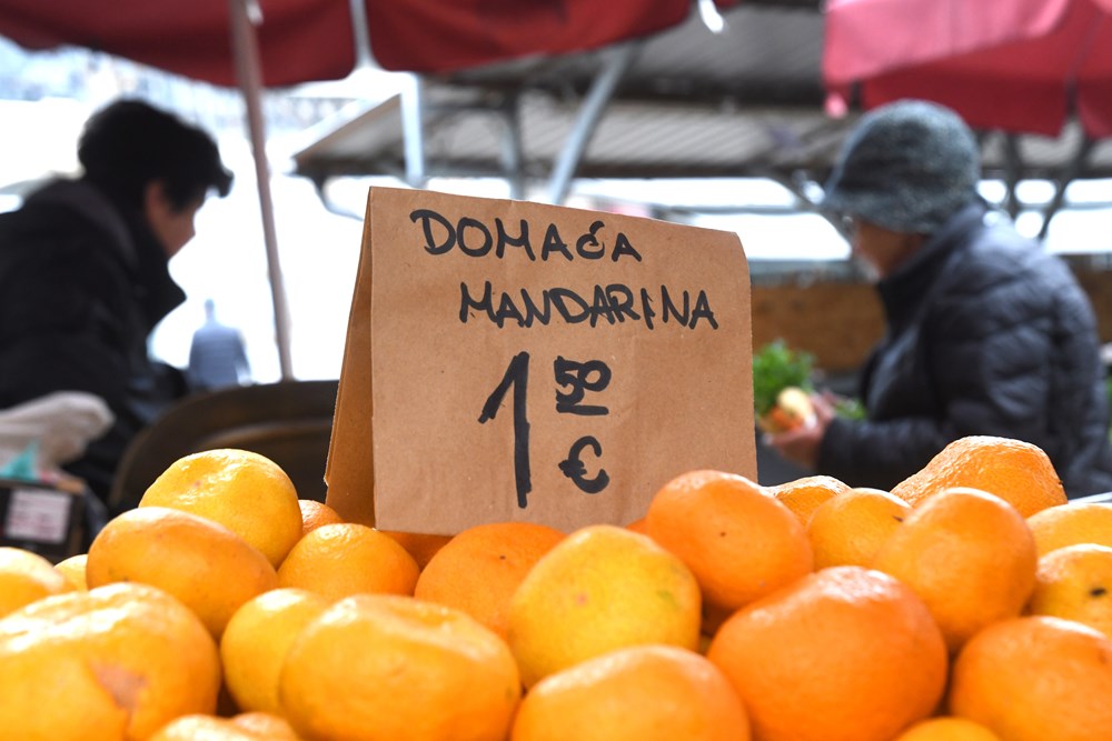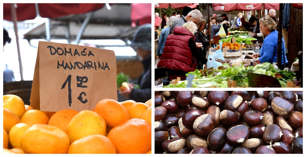 U uvijek šarolikoj ponudi pulske tržnice mnoštvo je sezonskog voća i povrća, a prednjače, dakako, mandarine i grožđe, kao i ponešto bundeva i kestena.