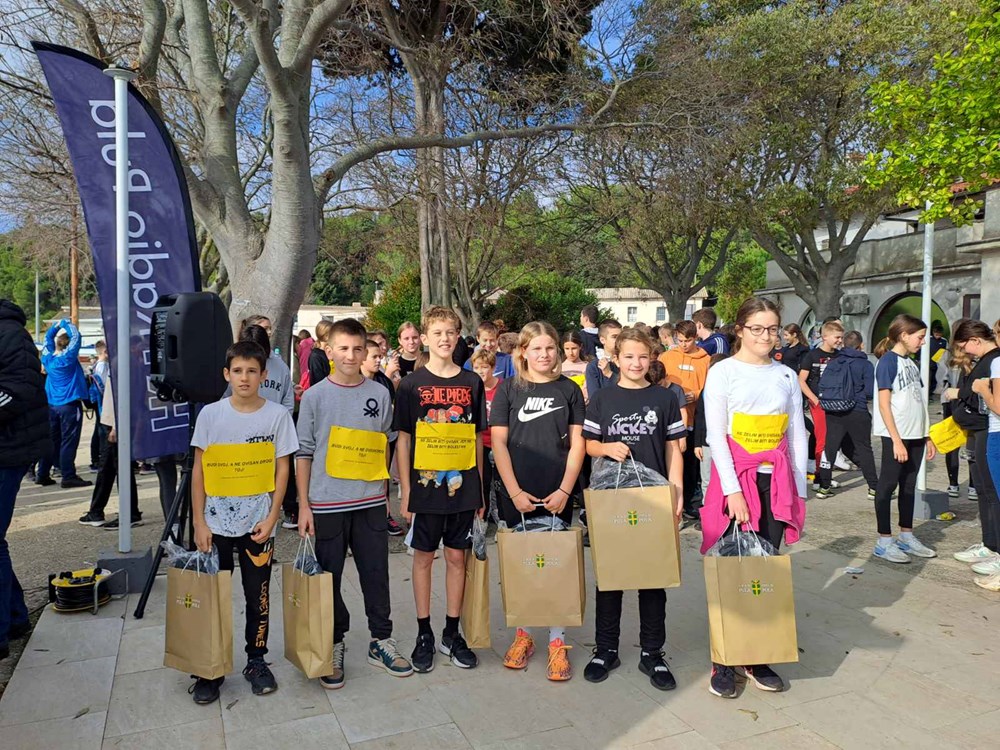 Prije početka utrke, na Mornaru su se uz organizatore okupili i njezini sudionici - učenici pulskih osnovnih škola Stoja i Veruda koji su umjesto startnih brojeva na majicama nosili najbolje slogane izabrane na natječaju učenika sedmih i osmih razreda osnovnih škola s područja Istarske županije.