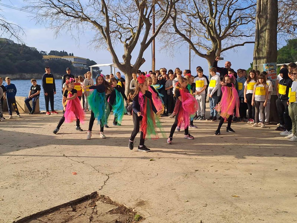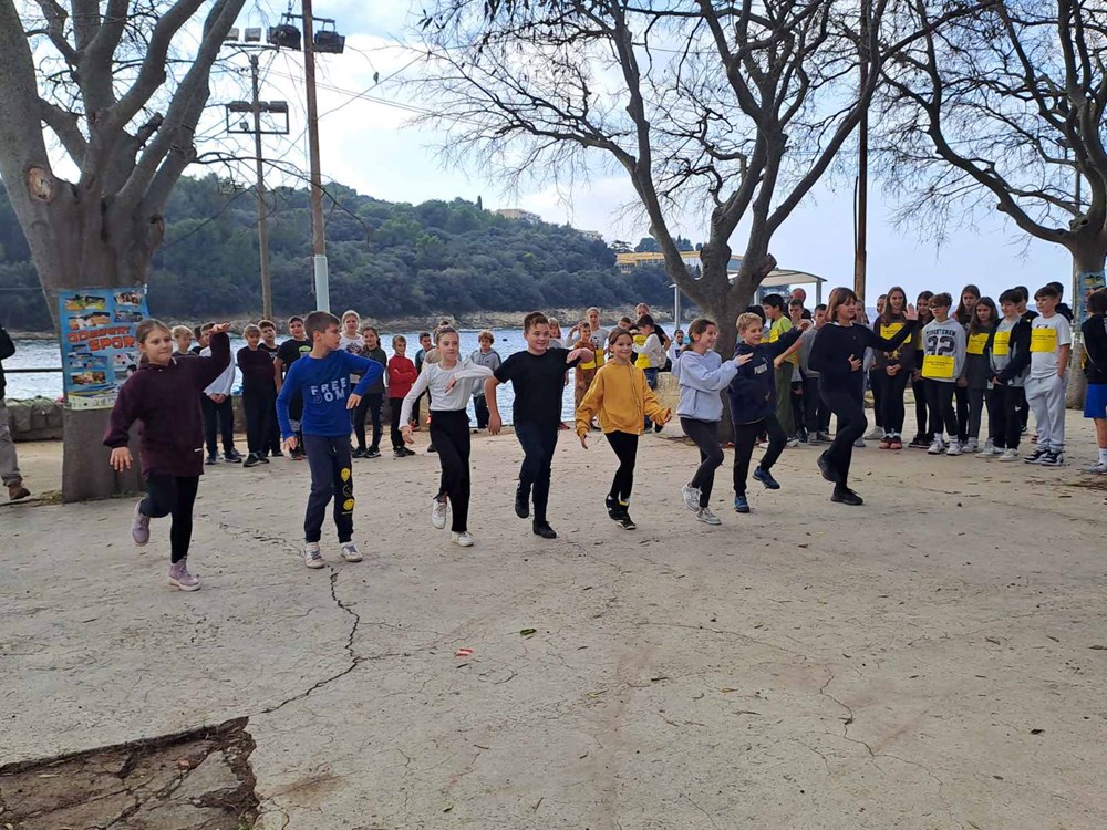 Utrci, koja se trčala od Mornara do Gortanove uvale i nazad, prethodio je zabavno-umjetnički program učenika obiju škola koji su pjesmom i plesom bodrili svoje vršnjake pred sam start.