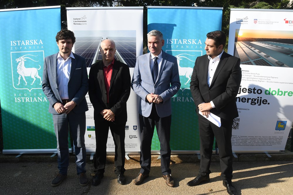 "Riječ je o jednom od tri projekta koje vodimo u programu suradnje s Norveškom, Islandom i Lihtenštajnom, a ovaj se tiče korištenja najdostupnijeg obnovljivog resursa u Istarskoj županiji, a to je solarna energija. Ukupno, na razini projekta, instalirat ćemo jedan megavat-sat ovih elektrana, a od toga 340 kilovat-sati na području Istarske županije. Na ove četiri zgrade proizvodit ćemo približno 380 tisuća kilovat-sati obnovljive električne energije godišnje.