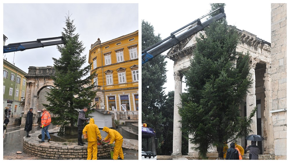 Žive jelke postavljene su danas na dvjema lokacijama u Puli; na Forumu i Portarati.