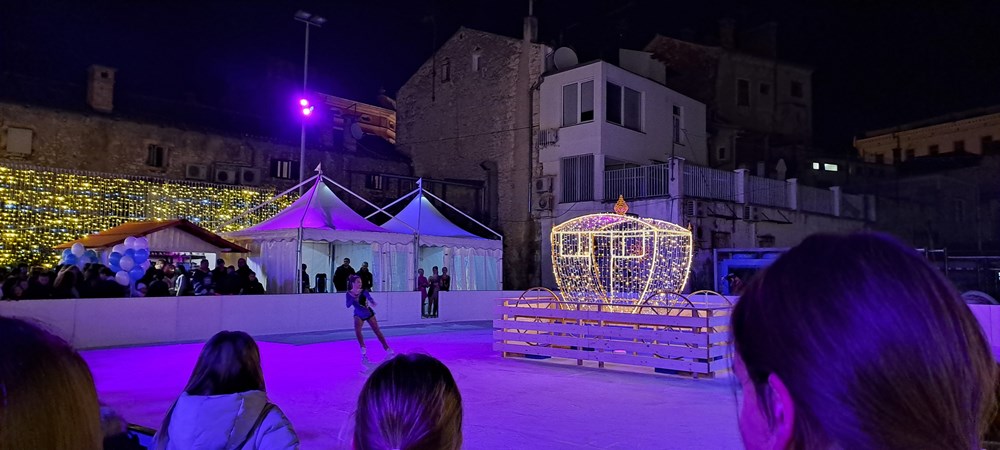 Grad je večeras zasjao u bljesku leda i lampica dok su četiri vješte klizačice oduševljavale ljubitelje zimskih radosti na novootvorenom klizalištu na igralištu Osnovne škole Centar. Klizalište kao dio programa Advent u Puli, svoja je vrata otvorilo u 18 sati, pružajući prisutnima, od onih najmlađih do malo starijih sugrađana, besplatno uživanje na ledu i mogućnost korištenja klizaljki sve do 22 sata. Djeca su nestrpljivo čekala u redu da ponovno, i ove godine, obuku klizaljke i stanu na led. A kako se moglo čuti, mnogima je to bilo prvo iskustvo koje jedva čekaju ponoviti.