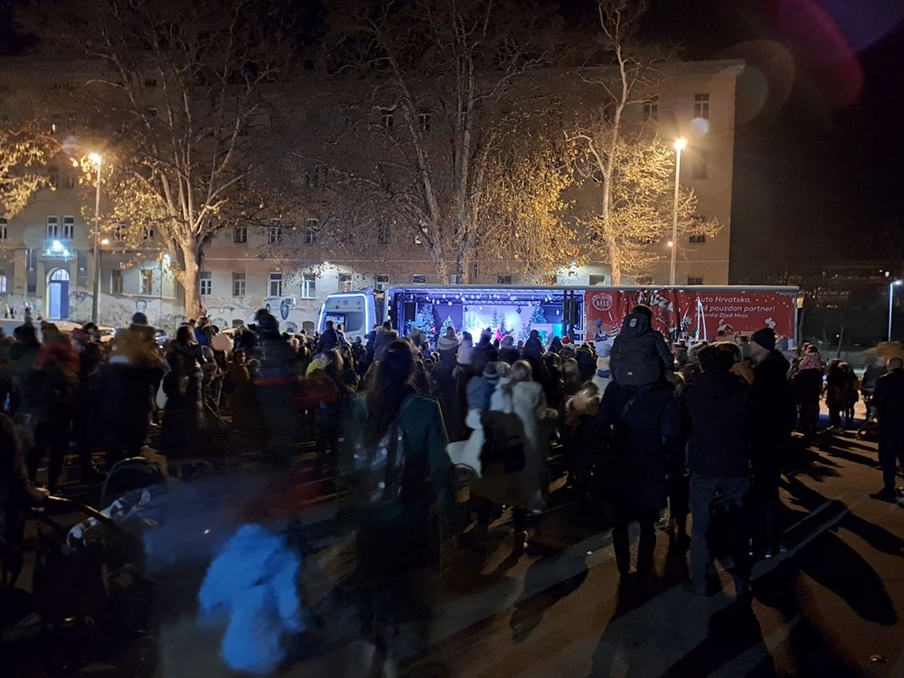 Blagdanski dekoriran kamion s Djedom Božićnjakom i njegovim pomoćnicima u Pulu je stigao razveseliti mališane i njihove roditelje, a osim prigodnog programa upotpunjenog predstavom, našlo se i vremena za ples i pjesmu, ali i slatkiše.