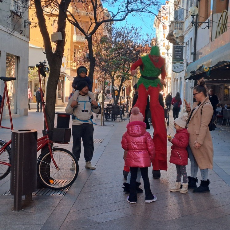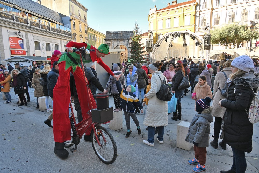 Subotnje jutro bilo je rezervirano za raznovrsne programe u sklopu programa Adventa u Puli, a ponajviše su na svoje došli oni najmlađi. Martiniuss Cirkus svojim je performansom sa štulociklom uveseljavao klince i klinceze počevši od Parka grada Graza, a potom i diljem užeg centra grada.