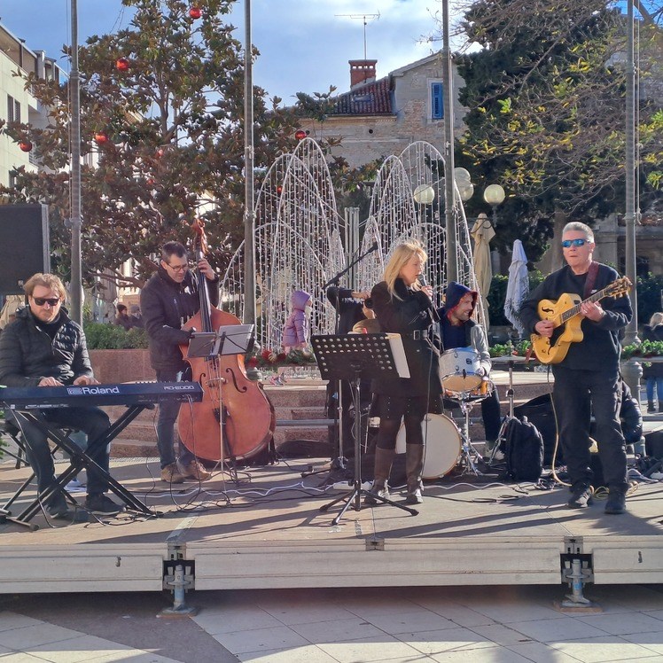 Nije bilo neobično zateći ga u igri s djecom, pa su čak i zaplesali. Fotografirati se s njime, ili zagrliti jelku, dječici je bilo baš zabavno. Na tržnici su već tradicionalno nastupili Leon Brenko Quartet i Ivona Fabris. Band izvodi najpopularnije i najljepše pjesme koje dočaravaju atmosferu i raspoloženje božićnih blagdana, karakteristične za ovo doba godine i kao takve nezaobilazan su dio božićnih i novogodišnjih svečanosti diljem svijeta. Uz ambijent otvorenih terasa u krugu tržnice, publike i prolaznika koji su nastup odlično prihvatili, izmjenjivale su se poznate jazz melodije u izvedbi odličnog ženskog vokala Ivone Fabris, u pratnji Leona Brenka na klaviru, Bore Lukića na gitari, Srđana Kuzmanovića na kontrabasu i Adriana Bernobića na bubnjevima.