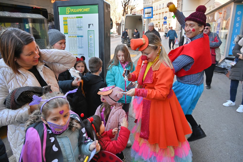 Peto godišnje doba i vladavina maškara ove subote već je bila vidljiva u centru Pule. Kako to obično i biva, sve kreće od najmlađih. Naime, započeo je program "Potraga za Karnevalom" koji će se održati, osim ove i naredne subote, 27. siječnja od 9.30 do 13 sati u samom centru grada.