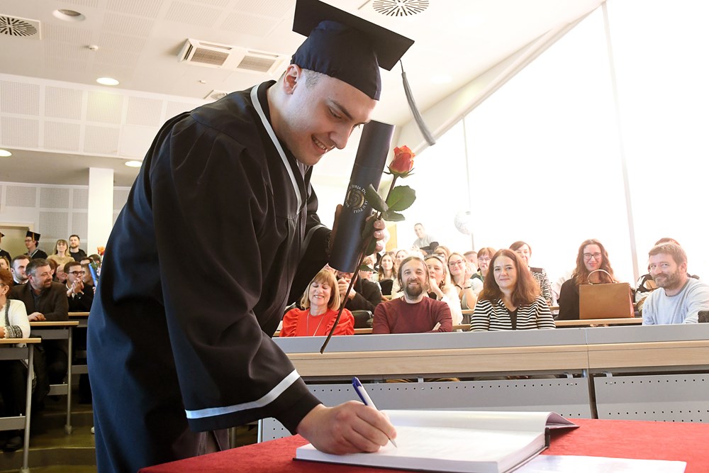 - Našim diplomantima poručujem da je to velik uspjeh i ponos Fakulteta da su diplomirali. Iznimno mi je zadovoljstvo što ih mogu promovirati danas. To je tek novi početak i želim im puno sreće i osobnog zadovoljstva, rekao je dekan koji je pozvao promovente da se uključe u Alumni klub, da nastave školovanje na diplomskim studijima, da prime studente na stručnu praksu u tvrtkama u kojima budu radili. Poručio im je i da sudjeluju u projektima i aktivnostima koje Tehnički fakultet održava i promovira. Budućim je studentima, pred kojima se tek mora naći odluka što upisati, poručio da ako vole tehničke znanosti i struku, Tehnički fakultet u Puli pravi je odabir za njih.