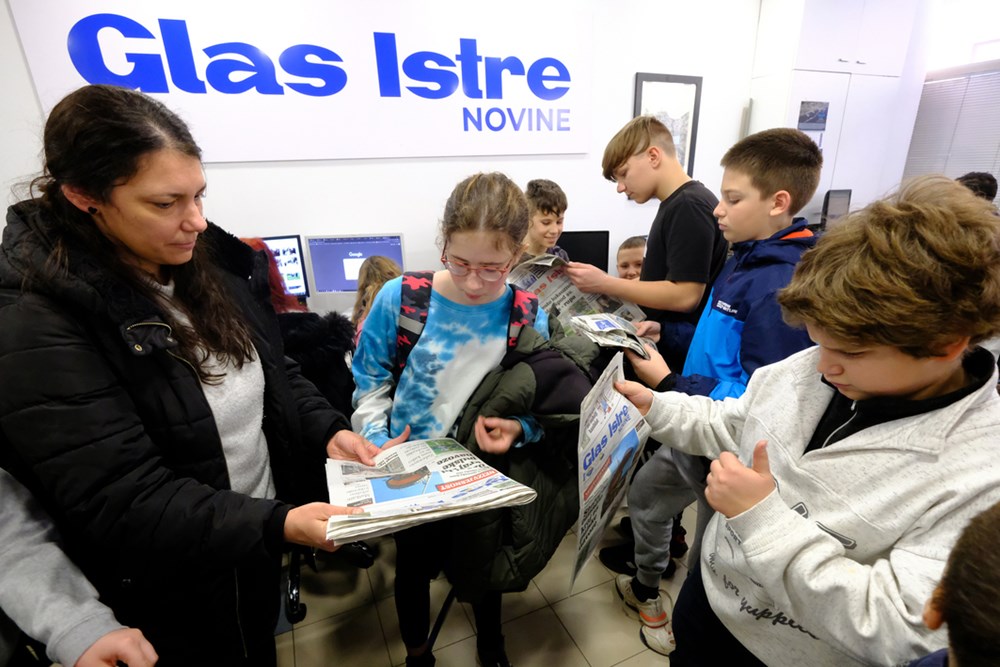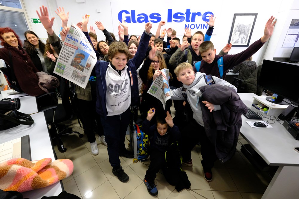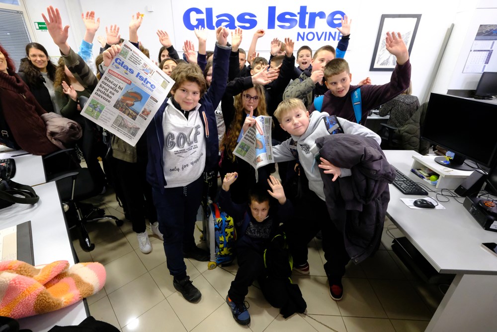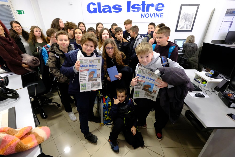 Redakciju Glasa Istre danas su posjetili učenici 5.a, 5.b i 6.a razreda Osnovne škole Centar. S njima su bile učiteljice Borka Sladonja i Sonja Perković, a došli su posjetiti sjedište najvećeg istarskog medija u sklopu izvannastavne aktivnosti Građanski odgoj i obrazovanje.