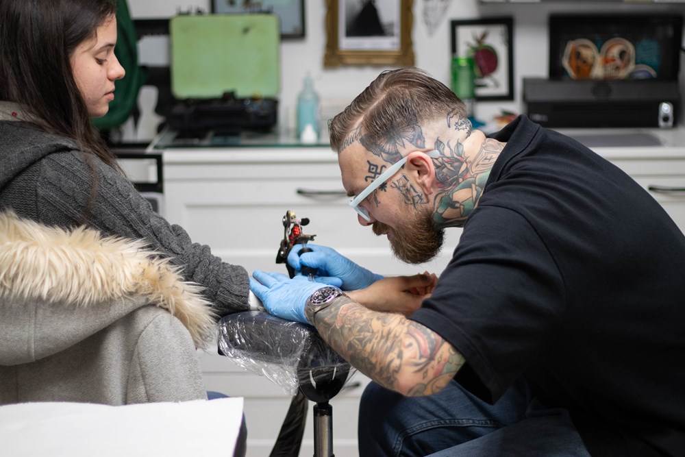 Istaknuo je da se s Lukasom i Brunom, koji su danas također tetovirali u studiju, poznaje već dugi niz godina. "Tetoviramo se međusobno, prijatelji smo, a Lukas mi je i kum. Tako da mi je drago da imam nekoga kome jako vjerujem, da dođe ovdje i pomogne nam", kaže Kociančić koji se tetoviranjem od 2010. godine.