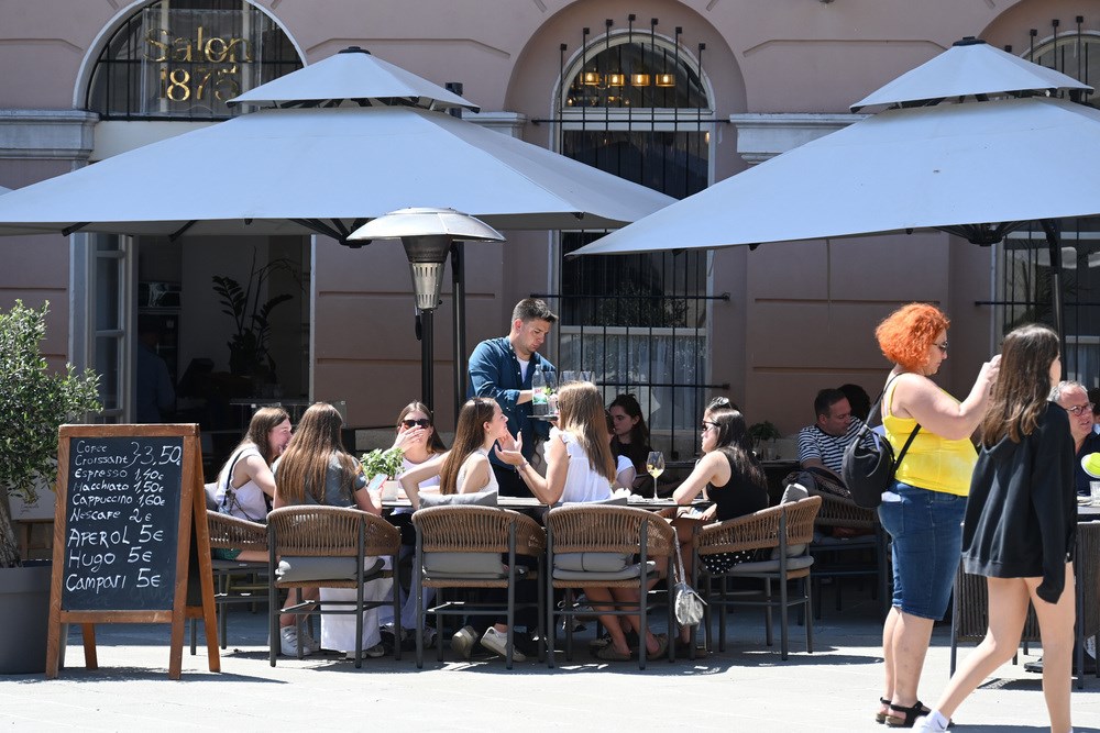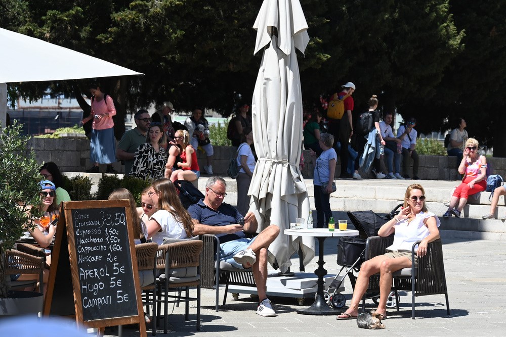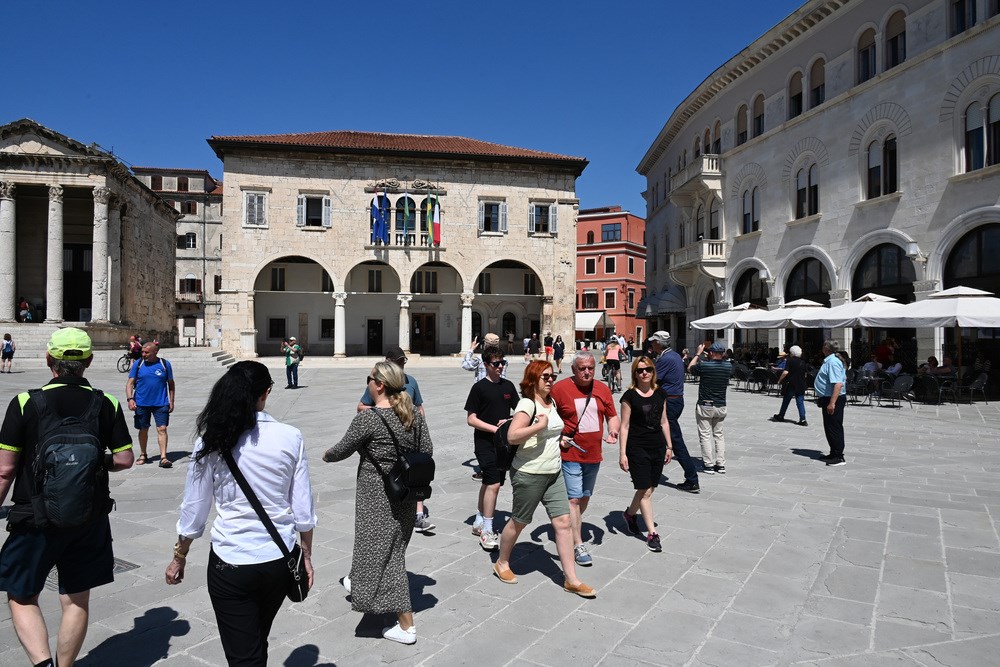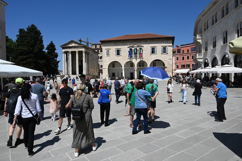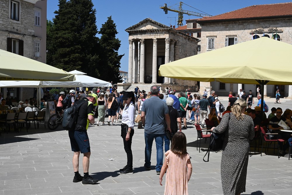Toplo vrijeme i sunčano prvosvibanjsko jutro namamilo je u centar Pule brojne turiste, koji su šetali Giardinima, Ulicom Sergijevaca, Forumom, Kandlerovom... Iako je većina trgovina bila zatvorena zbog Praznika rada, terase kafića su bile pune, što su turisti itekako iskoristili.