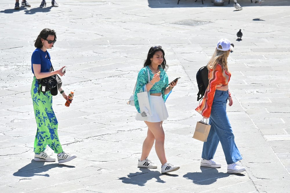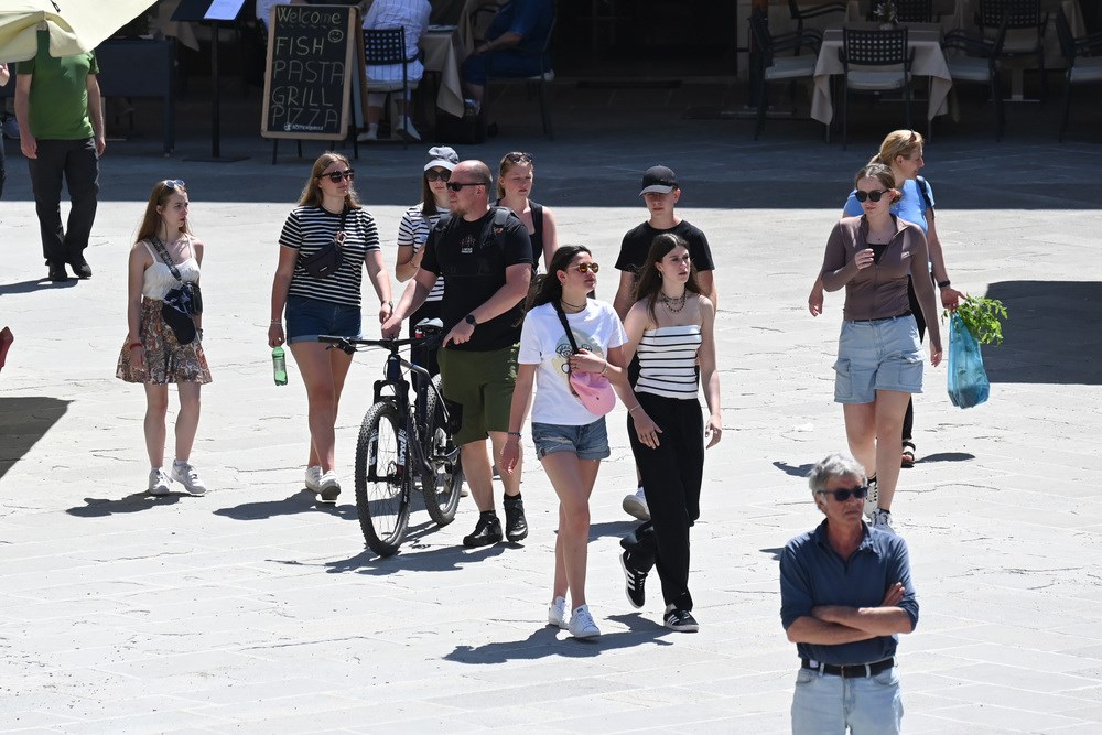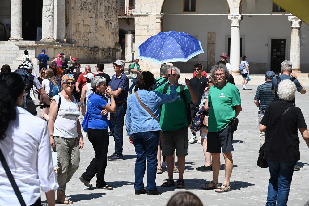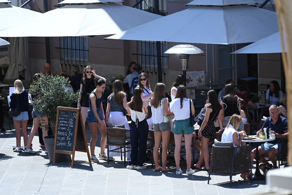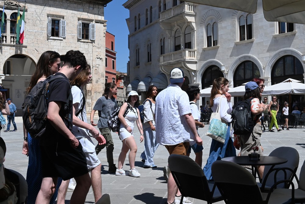 Toplo vrijeme i sunčano prvosvibanjsko jutro namamilo je u centar Pule brojne turiste, koji su šetali Giardinima, Ulicom Sergijevaca, Forumom, Kandlerovom... Iako je većina trgovina bila zatvorena zbog Praznika rada, terase kafića su bile pune, što su turisti itekako iskoristili.