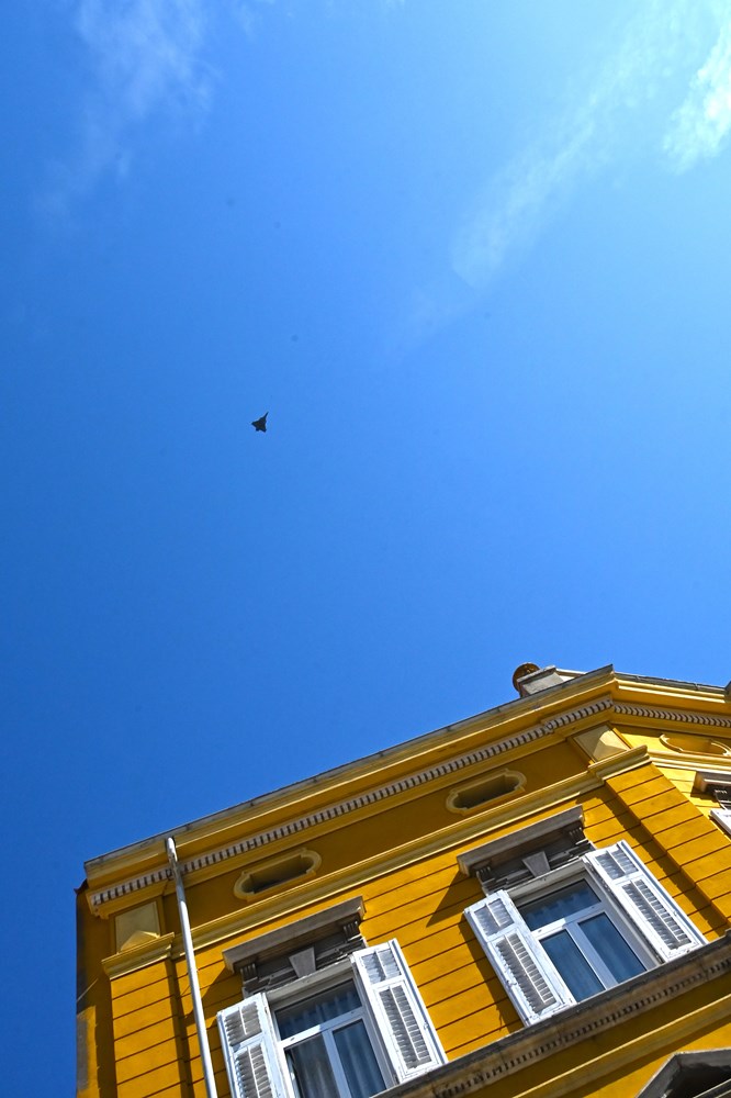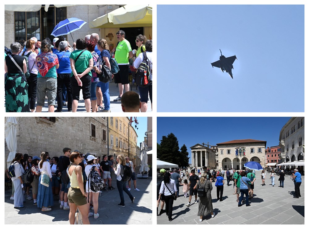 Borbeni zrakoplovi Rafalei su oko 10 sati proletjeli nad Pulom (kako su neki primijetili, 20-ak minuta kasnije od najavljenog), upravo u vrijeme kad na Portarati kreće tradicionalni program uz Puhački orkestar Grada Pule, KUD Matko Brajša Rašan i KUD-SAC Lino Mariani, uz polaganje vijenaca.