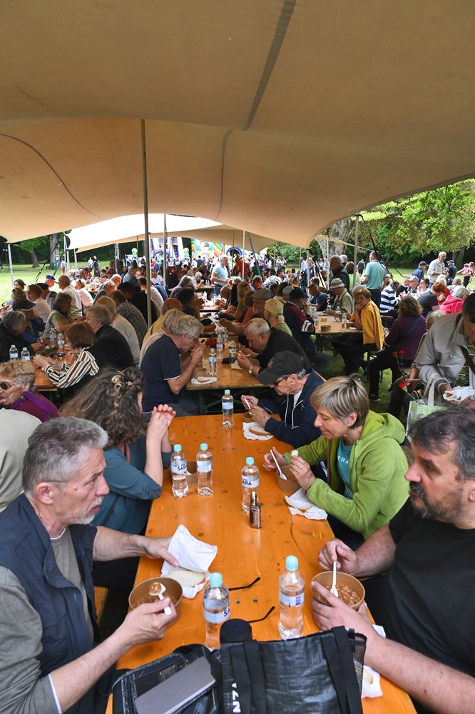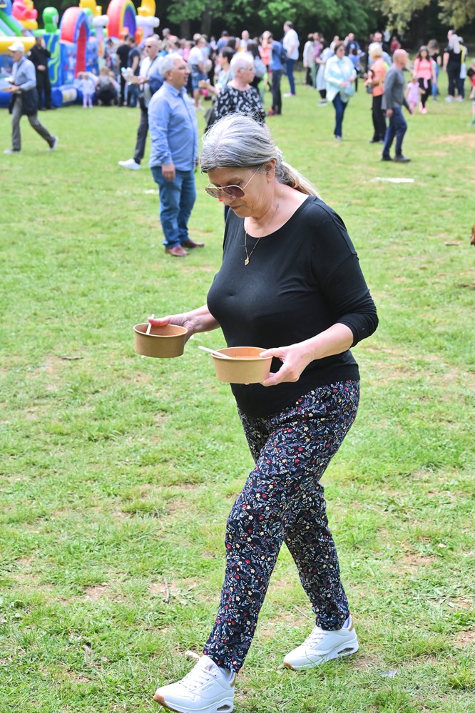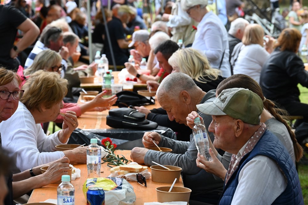 Uz fažol, posjetiteljima se dijelio i kruh te besplatne bočice vode. A nakon što je graha nestalo, povećao se red pred štandom na kojem su se pripremali ćevapi. U podužem redu, nakon što su završili s ručkom, okupljeni su čekali i da se zaslade s domaćim Nadinim fritulama. Valja reći, komentirali su i okupljeni, da bi bio dobrodošao koji štand više s ponudom kave i drugih napitaka, ili pak hrane, budući da je interes zaista bio velik. Neki su odlučili donijeti svoj ručak, pa su na osunčanoj livadi u društvu prijatelja i obitelji uživali u pikniku.