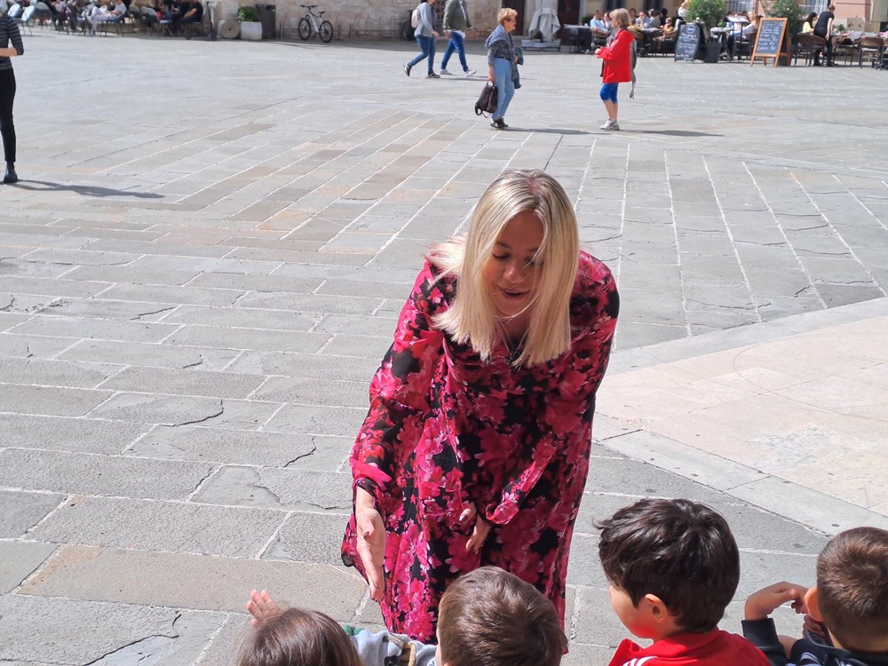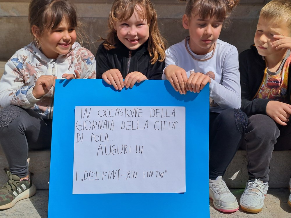 Na Forumu je nešto kasnije ispred Gradske palače grupu djece iz talijanskog DV Rin Tin Tin dočekala zamjenica gradonačelnika Pule Ivona Močenić, koja je ovom prilikom dobila i čestitku Gradu koju su joj upravo djeca i uručila. Nakon što se rukovala sa svom dječicom skupina "Delfini", pohvalila je njihovu čestitku i zahvalila im se obećavši da će čestitka svakako imati svoje mjesto u Gradskoj palači te da za nju sad moraju naći pravo mjesto. Najljepše i jest kad poruke gradu upućuju oni najmlađi, koji će u njemu najduže i živjeti, a svi se skupa nadamo i uživati.