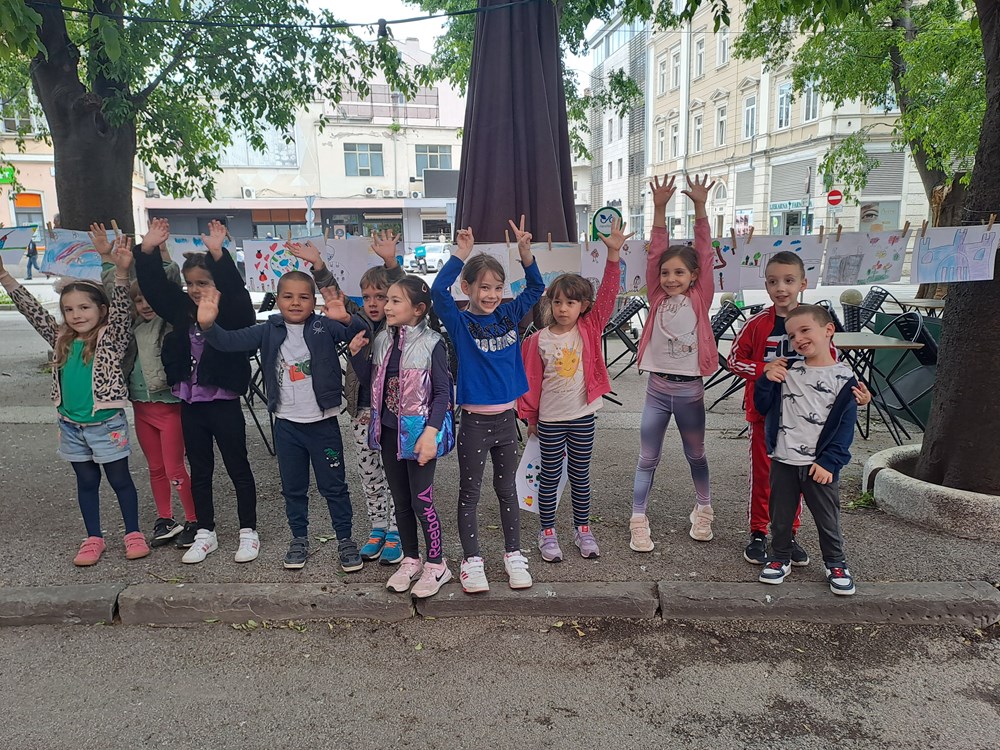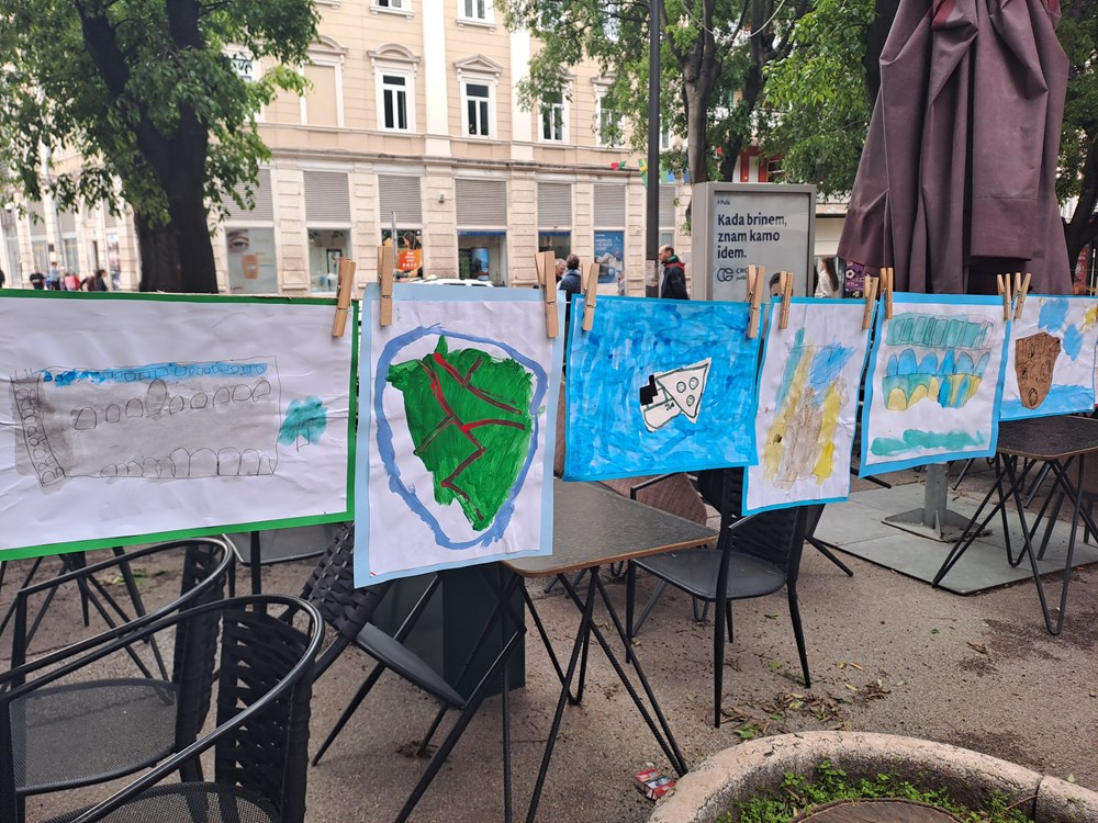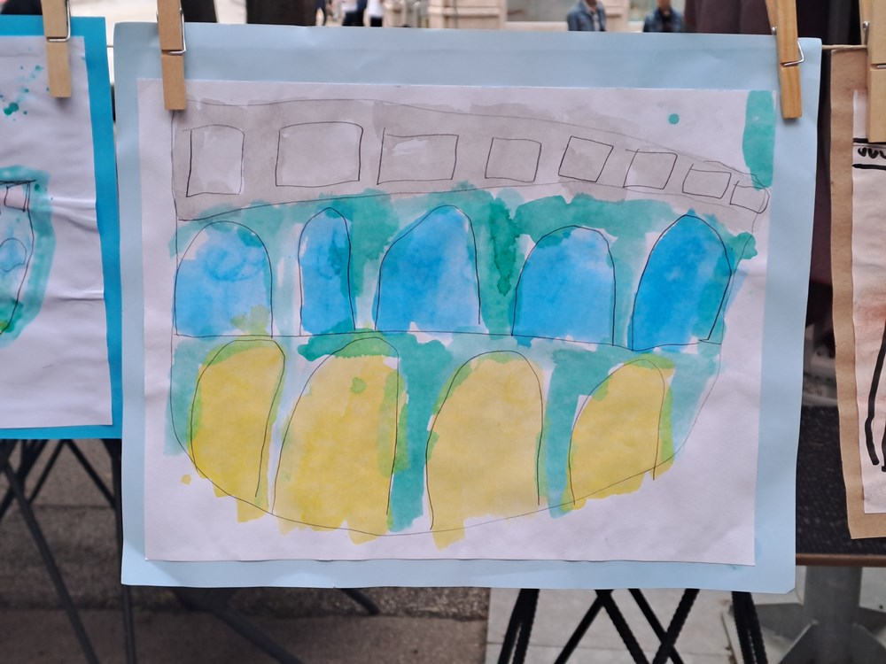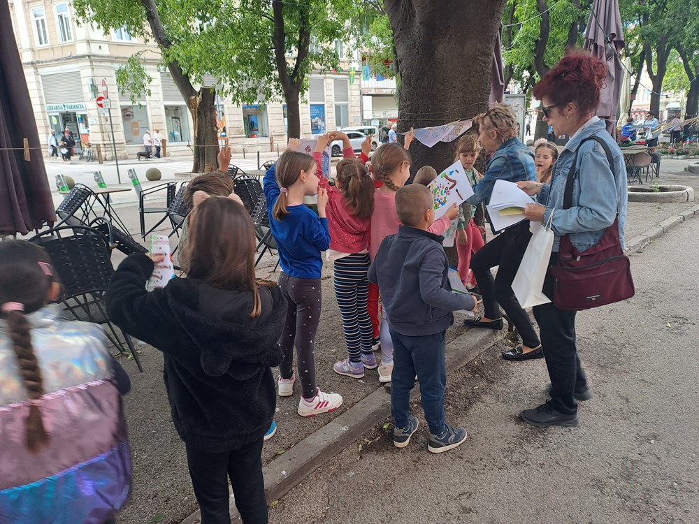 Naime, stavljali su ih štipaljkama na špage koje su razapete između stabla te se ovi crteži trenutno vijore u samom centru grada. Neka su djeca za motiv uzela čak i gladijatore. "Djeca su radila lavirani tuš, neki su radovi s markerima, neki s običnom olovkom, temperama, a bilo je i radova koje smo, nakon što su ih djeca nacrtala, umočili u kavu.