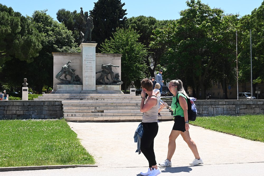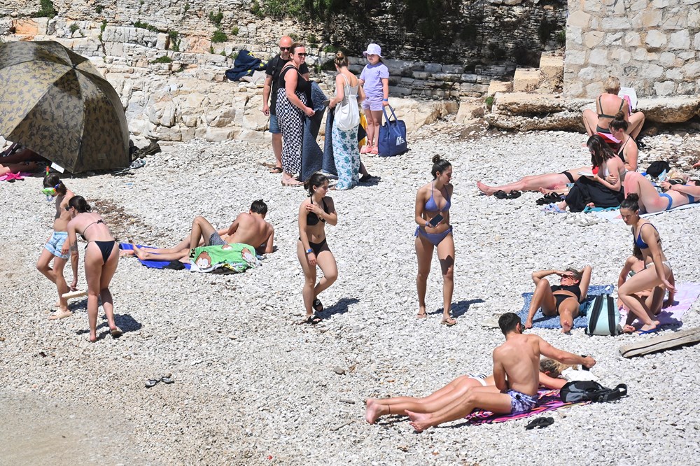 Visoke temperature i sunčan dan izmamile su danas na pulske ulice i plaže velik broj turista i lokalaca koji su uživali u lijepom vremenu.