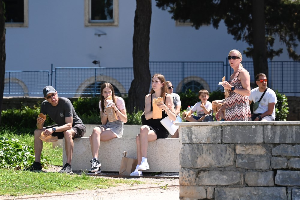 U centru grada pak - aktivno i užurbano. Mnogobrojni strani posjetitelji bicikliraju kako bi razgledali što više ljepota i posebnosti najvećeg istarskog grada, a u pauzi od okretanja pedala trebalo se i okrijepiti. Najpopularniji izbor kako domaćima, tako i turistima - pekarski proizvodi.