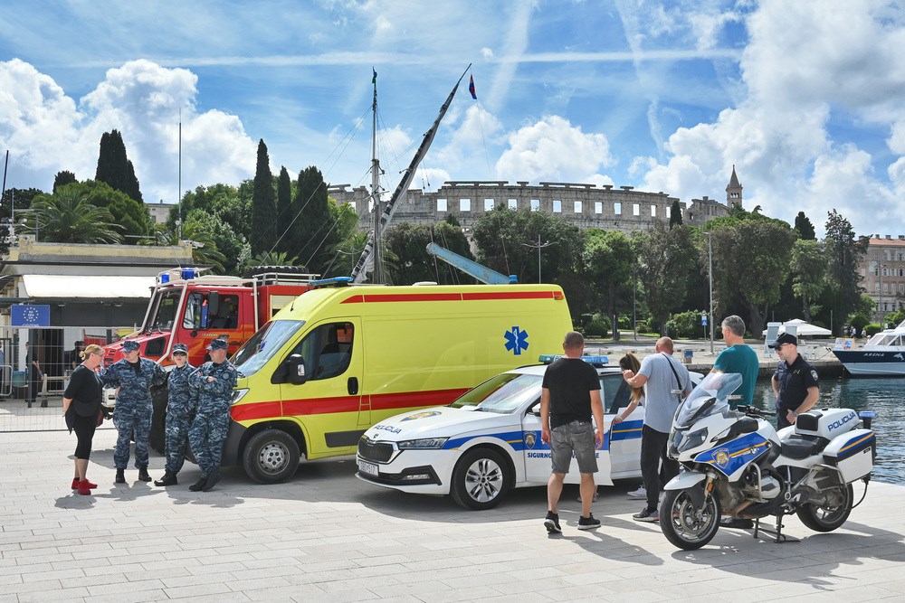 - Ne smijem ovdje zaboraviti spomenuti kako su tu i pripadnici Ministarstva unutarnjih poslova. Tu je interventna policija iz Istre, a prisutna i pulska Javna vatrogasna postaja. Kao što sam rekao, svi elementi domovinske sigurnosti ovdje su zastupljeni sa svojim predstavnicima i eksponatima. Osim plovila i helikoptera tu su i borbeno oklopno vozilo Patria hrvatske kopnene vojske te vozilo naoružano strojnicama. Tu su i dio sitnije opreme, strojnice - rekao je pukovnik Kampić.