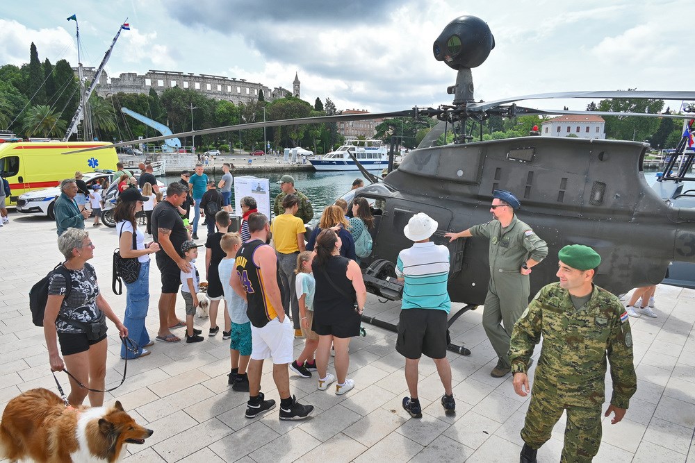 Izložba je postavljena tijekom cijelog dana, a Puljanima i njihovim gostima na pitanja je odgovaralo 30-ak pripadnika svih rodova vojske, uključujući djelatnike MUP-a i pulskih vatrogasaca.