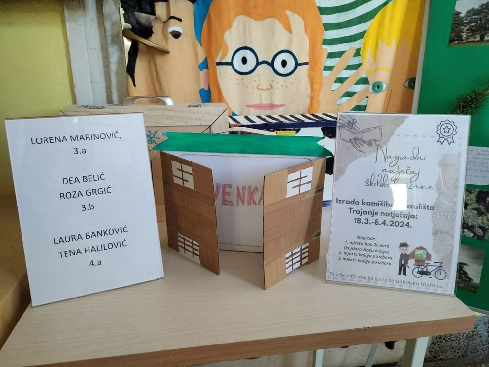 - U goste nam je stigla i knjižničarka Dušanka Đokanović iz OŠ dr. Mate Demarina Medulin. Učenicima 3. i 4. razreda pripovijedala je narodnu priču "Košulja sretnog čovjeka". Nakon tih aktivnosti uslijedio je nagradni natječaj izrade kamišibaja za učenike od 3. – 5. razreda. Učenici su se potrudili i izradili tri kamišibaja koje smo i nagradili knjigom po izboru.