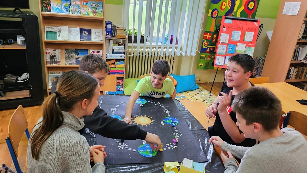 Društvena igra nalazi se u knjižnici i učenici se rado igraju za vrijeme velikih odmora, prenose iz škole.