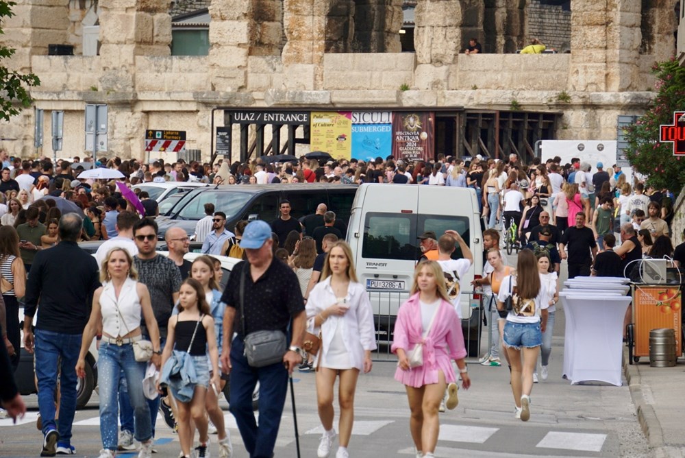 Dua Lipa večeras nastupa pred prepunom pulskom Arenom u sklopu svoje turneje "Radical Optimism". Pula je nakon Berlina druga stanica na turneji koja će nastaviti putem drugih svjetskih metropola. Tisuće obožavatelja u redovima je stajalo još od 16 sati iako su se ulazi otvorili u 19 sati.