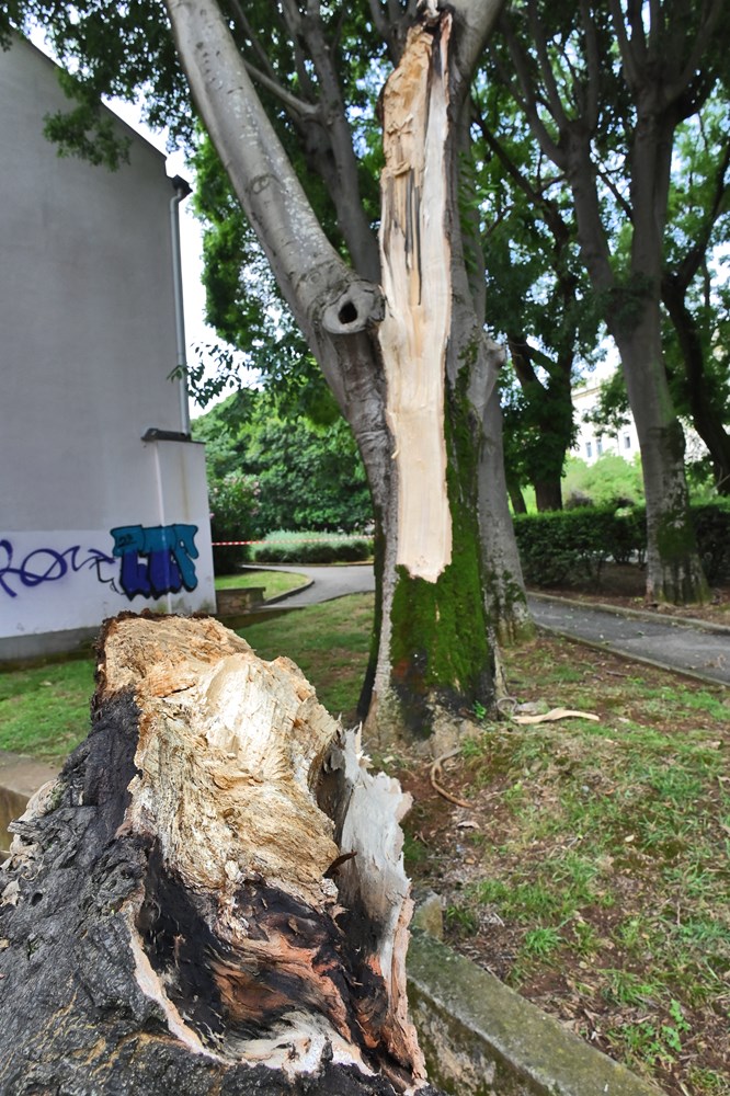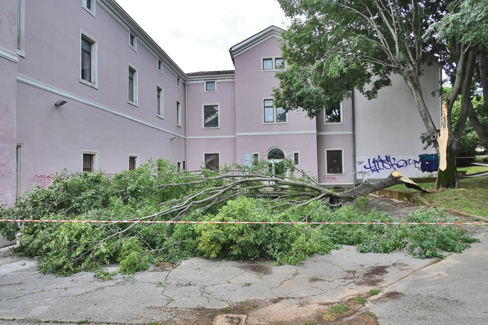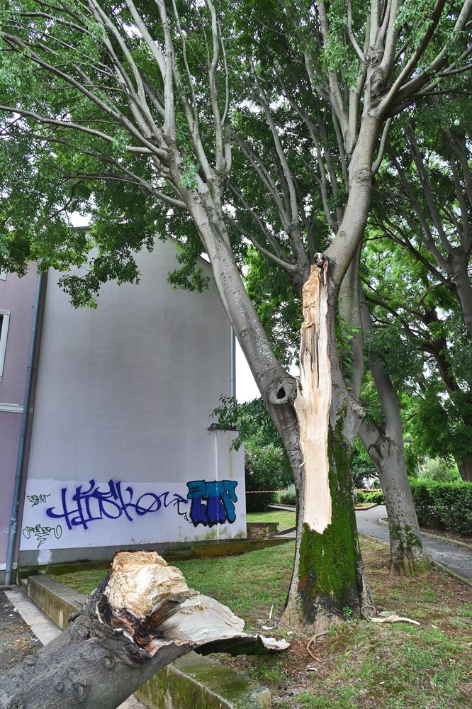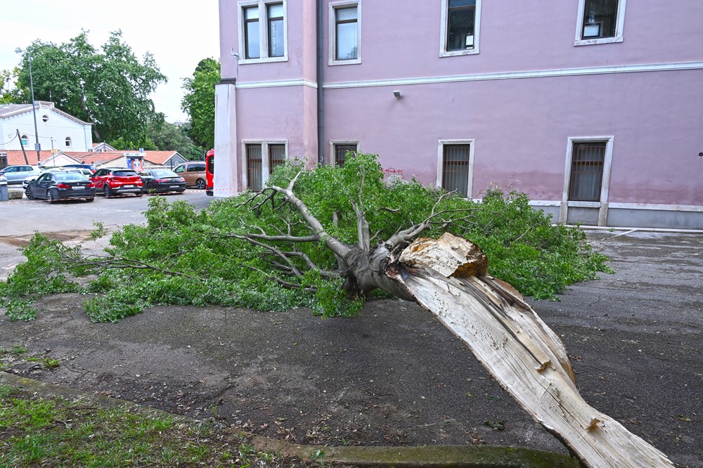 Snažno nevrijeme popraćeno jakom kišom i grmljavinom koje je proteklu noć pogodilo Pulu ostavilo je svoje posljedice; naš je fotoreporter u svoj kadar ulovio puknuto stablo nedaleko od Arene.