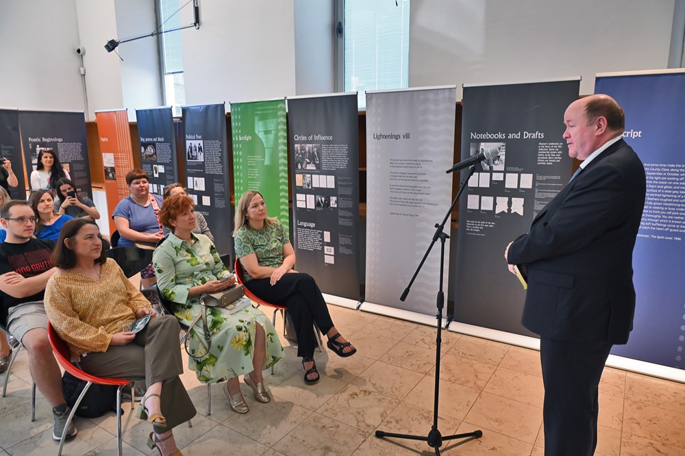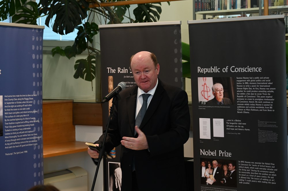 Dowling je u Gradskoj knjižnici otvorio i izložbu posvećenu još jednom velikom irskom piscu, Seamusu Heaneyju. Dowling je rekao da je Seamus Heaney poeta modernog doba koji je dobio Nobelovu nagradu. Naglasio je da je inspiraciju za pisanje, kao i mnogi, crpio od Jamesa Joycea koji je i sam, osim romana, pisao i pjesme. Izrazio je zadovoljstvo održavanjem Bloomsdaya u Puli i zahvalio se svima uključenima u organizaciju i otvorio izložbu.