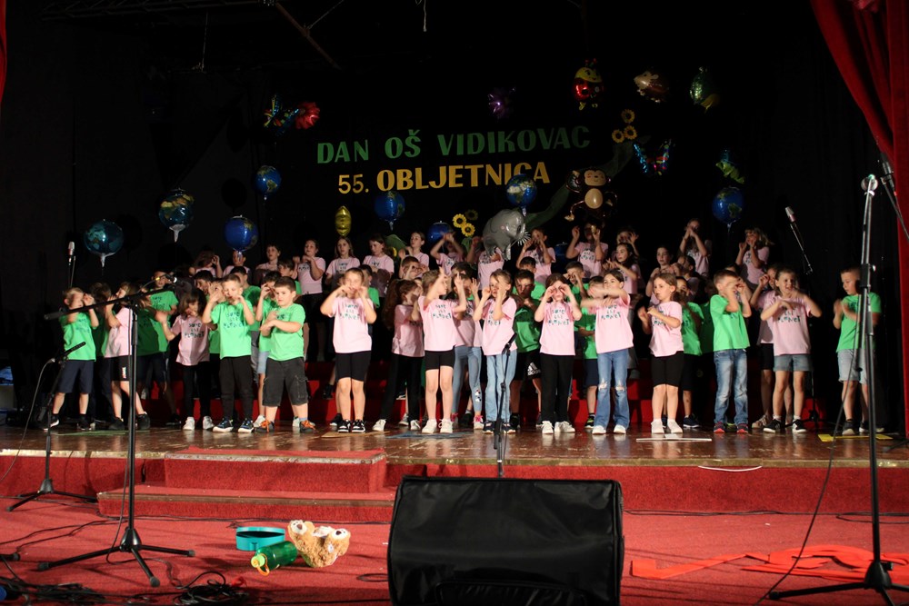 Osnovna škola Vidikovac proslavila je u četvrtak 13. lipnja svoj 55. rođendan u velikom stilu, obilježavajući više od pola stoljeća posvećenosti obrazovanju i zajednici. Događaj je bio prava riznica uspomena i kreativnosti, spajajući sadašnje i bivše učenike kroz raznovrsne umjetničke i kulturne aktivnosti. Program je bio bogat raznolikim izvedbama, izložbama i retrospektivama koje su istaknule značaj škole kroz povijest. Za optimalan redoslijed izvrsno uvježbanih točaka i organizaciju programa zadužena je bila učiteljica Dea Dragosavac.