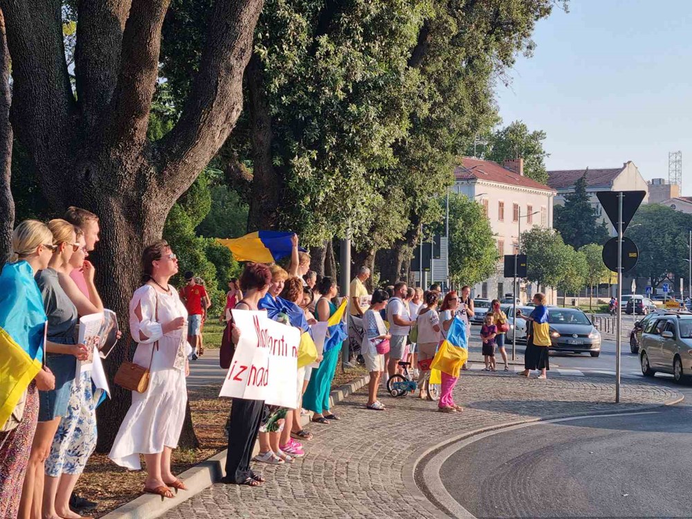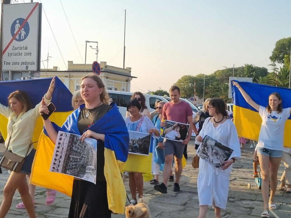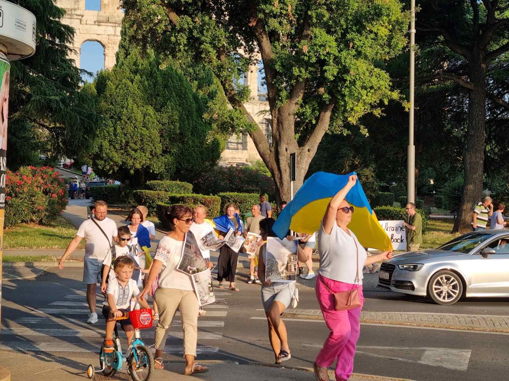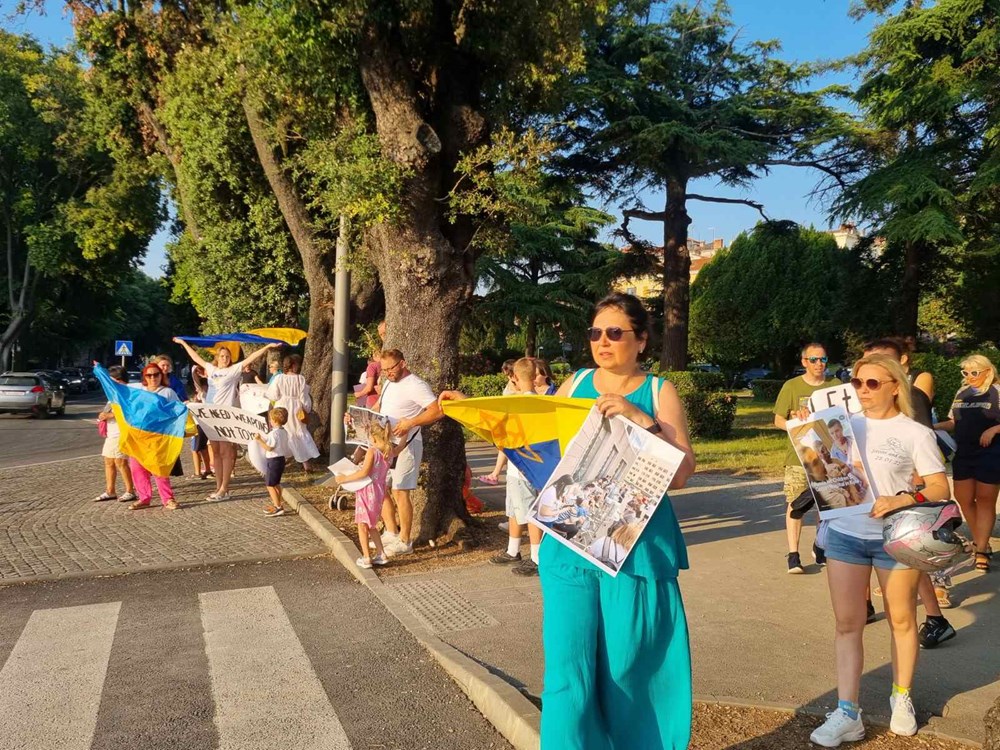 Nakon jučerašnjeg bombardiranja dječje bolnice u Kijevu, događaja koji je zaprepastio svijet, večeras je u Puli održan marš za podršku Ukrajini. S ukrajinskom zastavom i uz poruke "Djetinjstvo za djecu Ukrajine", te "Moramo zatvoriti nebo iznad Ukrajine", skupina prosvjednika, mahom Ukrajinaca, ali bilo je tu i Istrijana, marširala je pulskom rivom prepunom automobila, a neki od njih su im trubeći izrazili podršku.