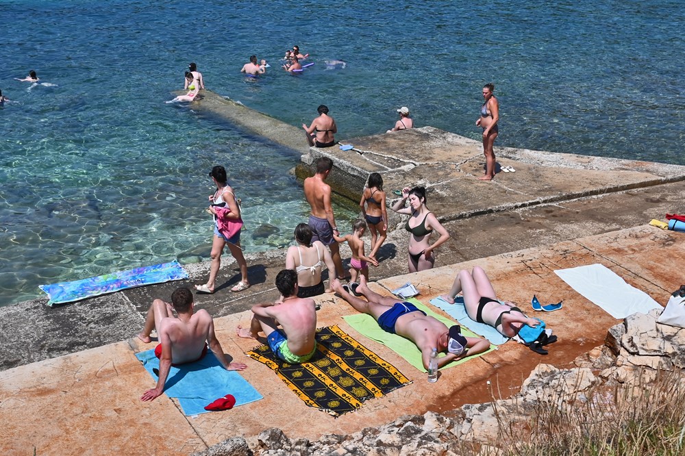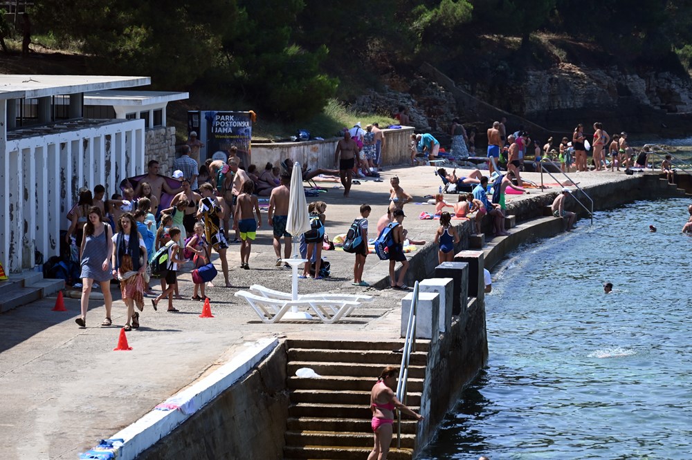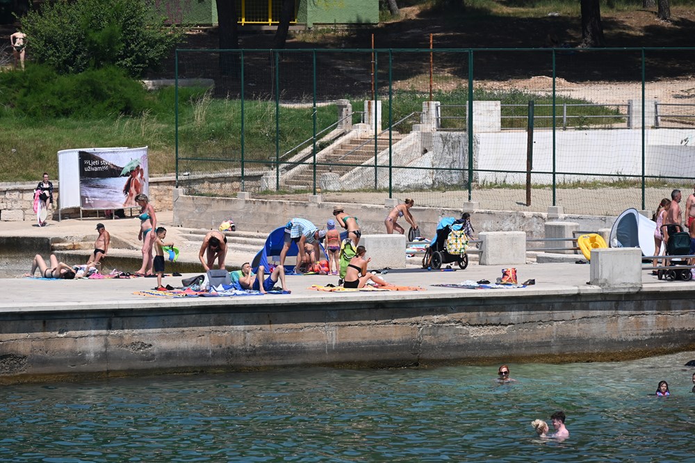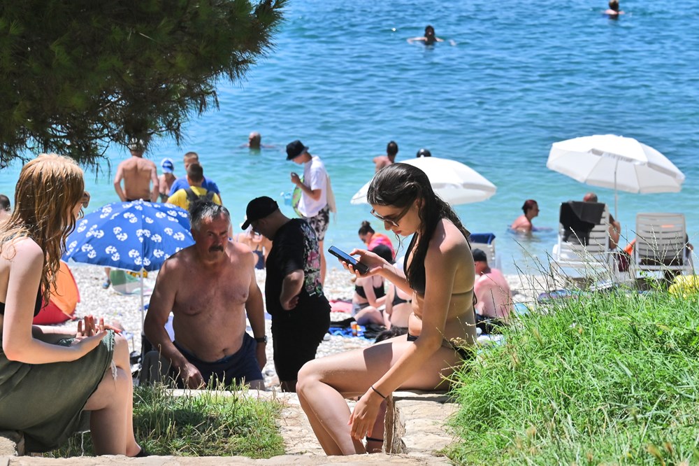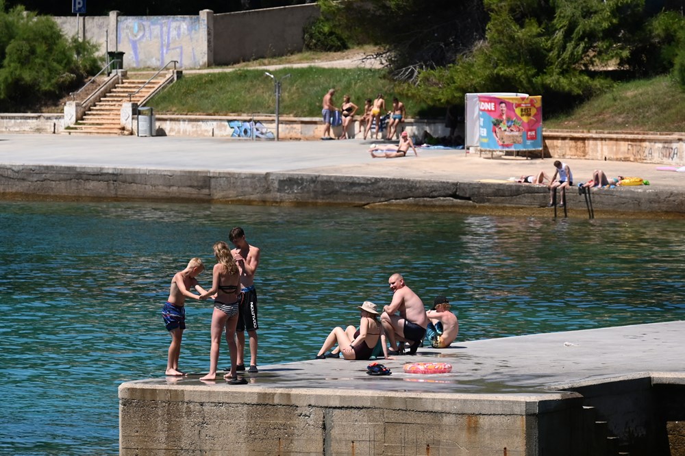 Danas su pulske plaže preplavile šarolike boje kupača koji su tražili spas od sve gorih vrućina. Već je jutros bilo 29 stupnjeva Celzija, pa nije ni čudno da su svi, od najmlađih do najstarijih, pobjegli na more.