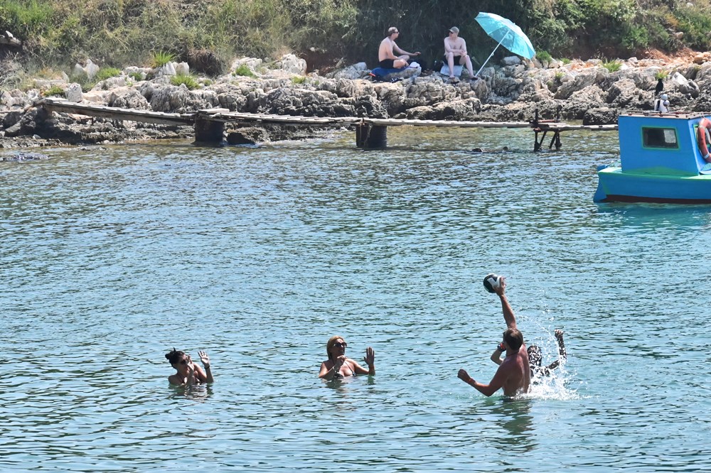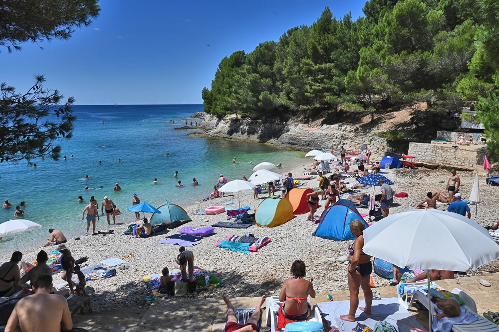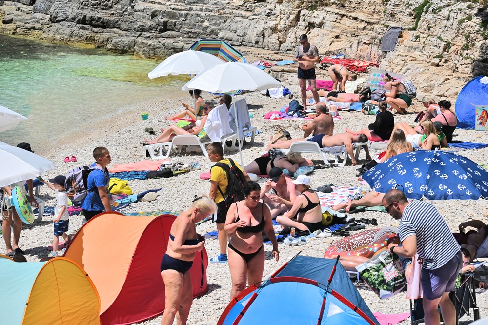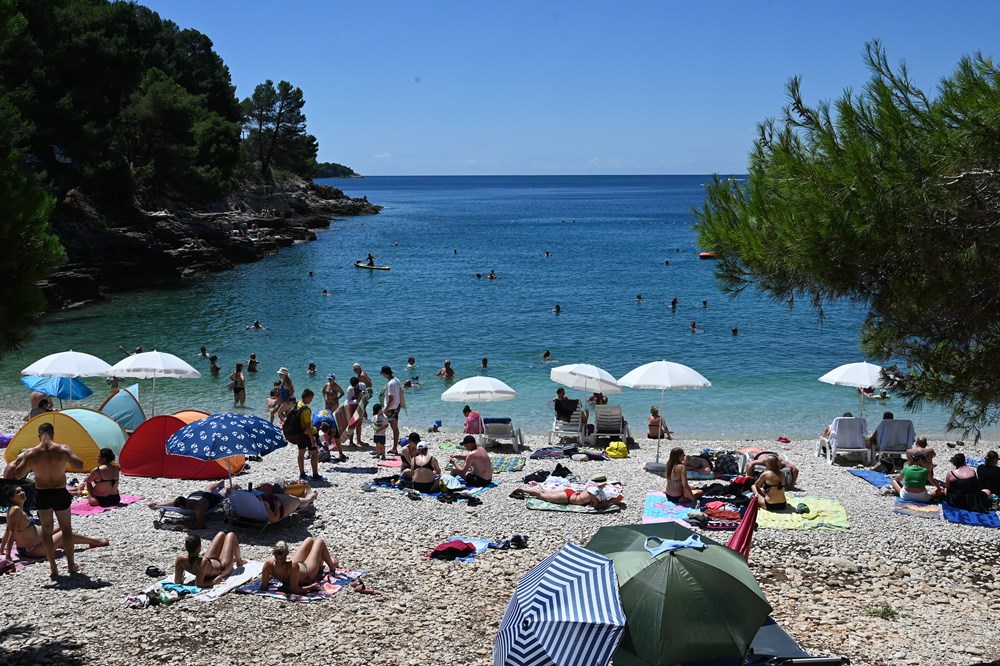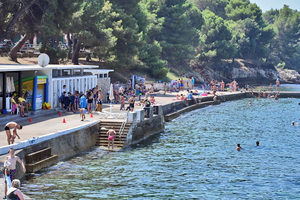 Danas su pulske plaže preplavile šarolike boje kupača koji su tražili spas od sve gorih vrućina. Već je jutros bilo 29 stupnjeva Celzija, pa nije ni čudno da su svi, od najmlađih do najstarijih, pobjegli na more.
