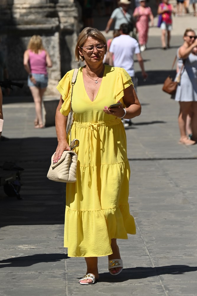 Osim haljina raznih dužina i uzoraka, uz koje se lakše diše na visokim temperaturama i jakom suncu, većinom laganih materijala, nose se i kratki kombinezoni, lanene hlačice, a kao zaštitu od sunčevih zraka - jednoj je prolaznici poslužio i kišobran iznad glave.