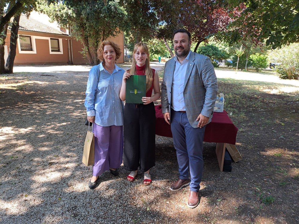 - Drage maturantice i maturanti, želim vam čestitati na uspješno završenom važnom dijelu odrastanja. Vas sada čekaju mnogi životni izazovi i želim da kreirate sebi prostor na vama svojstven način. Ne bojte se, budite hrabri i spremni mijenjati društvo. Današnji prijem željeli smo održati upravo ovdje u Parku Anne Frank, koji smo prije dvije godine otvorili, s jasnom porukom da kao mladi ljudi pokušate pronaći uzor u djevojčici Anni i njezinoj borbi da opstane, rekao je gradonačelnik Zoričić te ujedno čestitao i roditeljima, profesorima i razrednicima. Najbolji ovogodišnji maturanti 11 pulskih srednjih škola su: Antonio Kovačević iz Industrijsko-obrtničke škole, Mark Marić iz Škole primijenjenih umjetnosti i dizajna, Dino Jerman iz Škole za odgoj i obrazovanje, Indi Košenina iz Tehničke škole, Ena Pliško iz Glazbene škole Ivana Matetića Ronjgova, Monika Cvek iz Ekonomske škole, Hana Družetić iz Strukovne, Edita Sulić iz Medicinske škole, Šimun Princip iz Škole za turizam, ugostiteljstvo i trgovinu, Vid Šarić iz Gimnazije Pula i Luka Planinac iz Talijanske srednje škole Dante Alighieri. Maturanti su dobili poklon bon u vrijednosti od 800 eura za kupnju informatičke ili digitalne opreme. Prijemu je prisustvovala i pročelnica nadležnog Upravnog odjela za društvene djelatnosti, mlade i sport Ivana Sokolov.